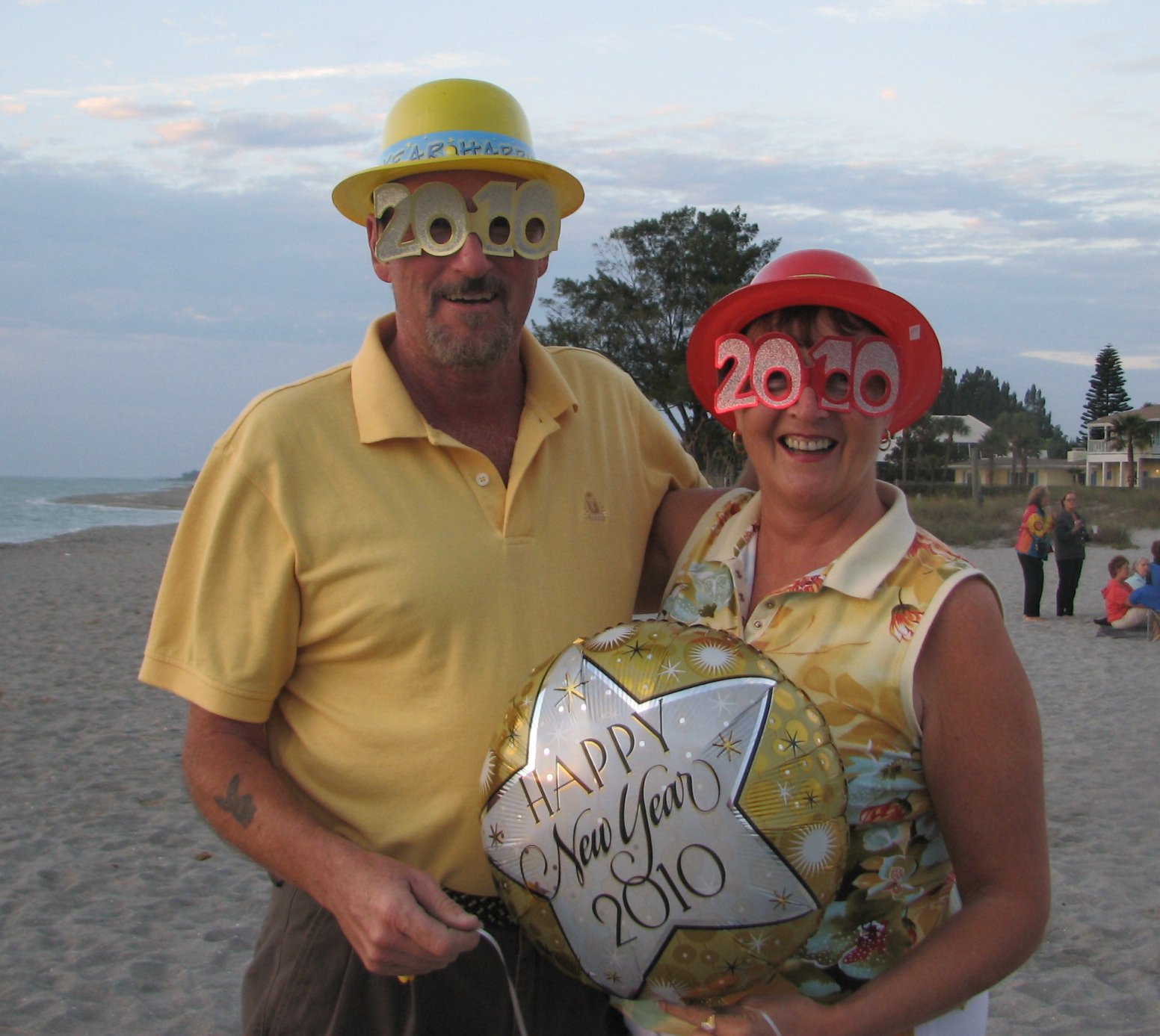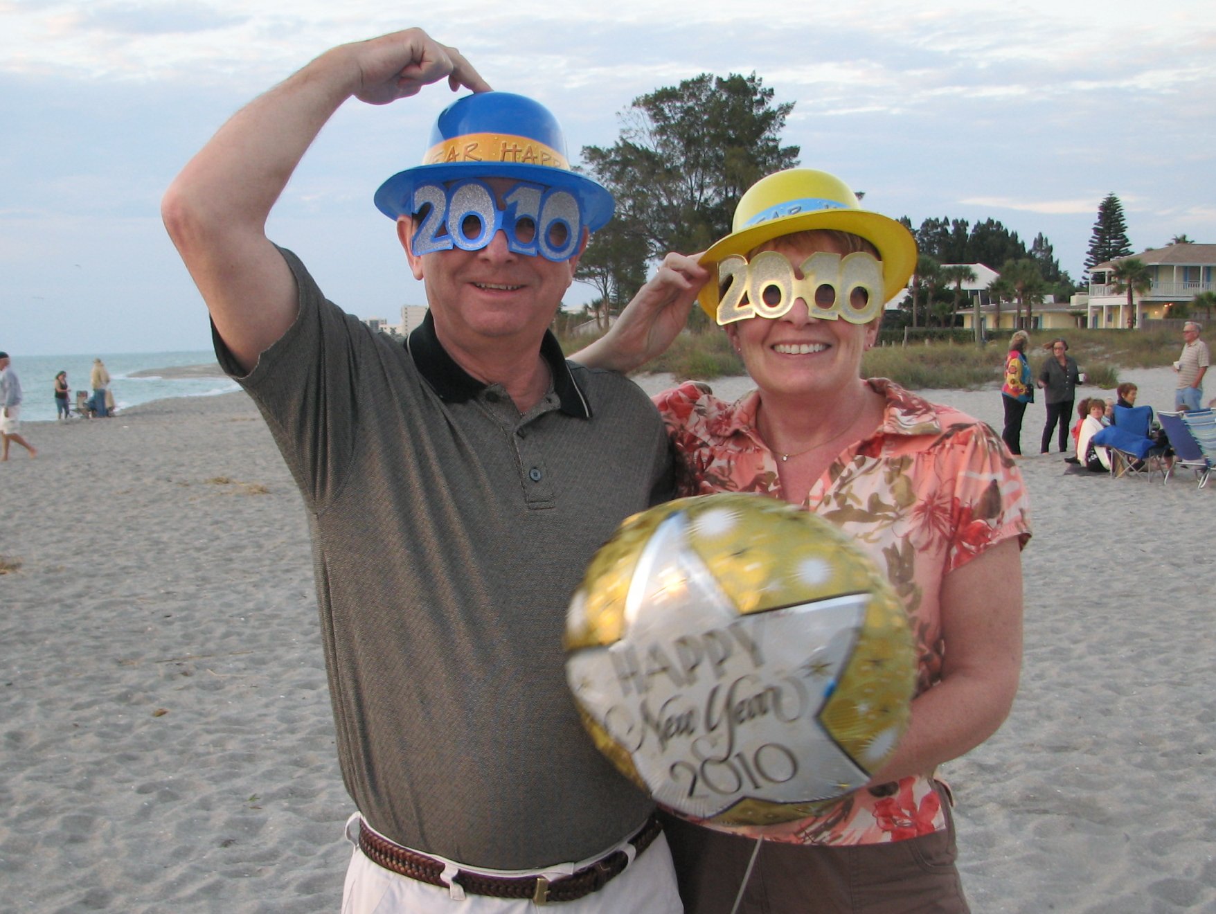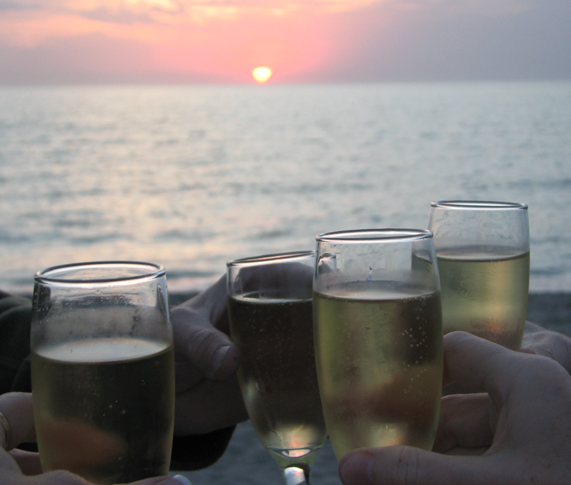At sunset (5:45 pm) we went to the beach for champagne, chocolate covered strawberries, cashews and other treats. There were lots of others there cheering the last sunset of the decade