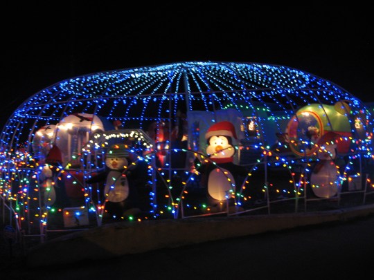 On our way home from Mission Valley we stopped on Shamrock Drive to show them the penguin display that grows larger each year. The blue dome was added this year.