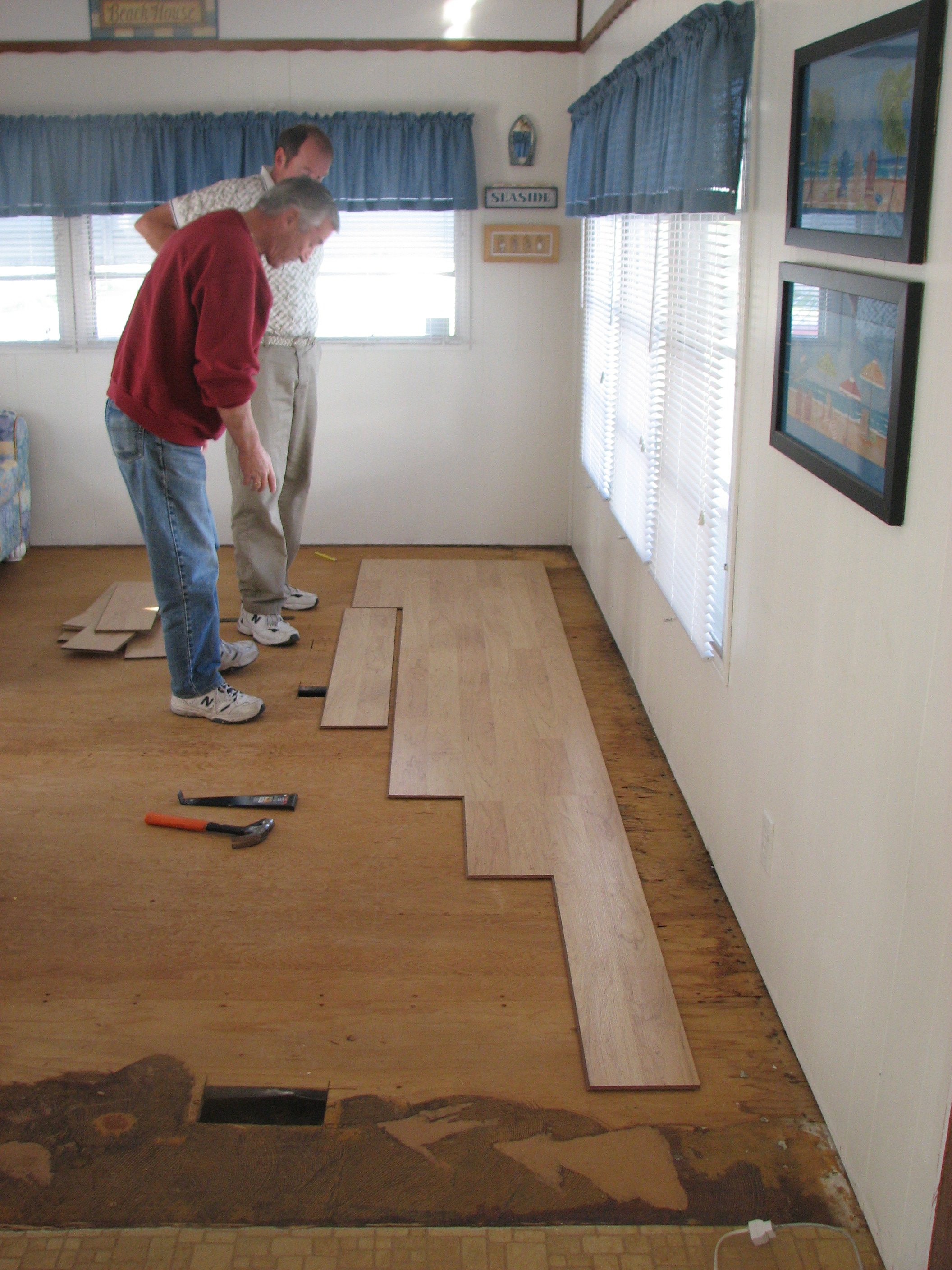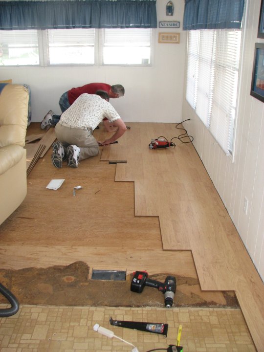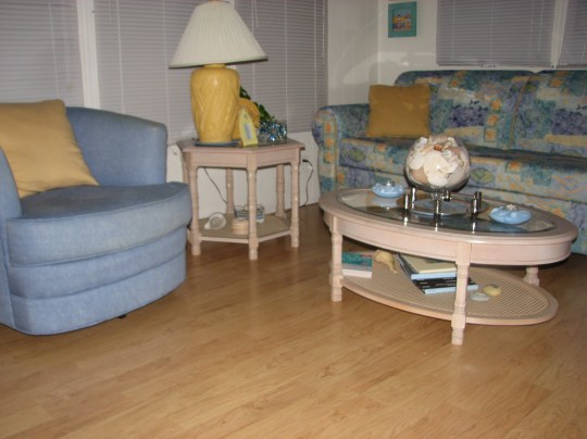 Santa brought us wonderful laminate floor for the mobile and Dave and Dave Thomas laid the biggest area on Thursday and continued work on Friday. It had the underlay attached to it so the laying of board was quicker. I am thrilled with it so far. I will update the pics when the whole area is finished on Saturday.