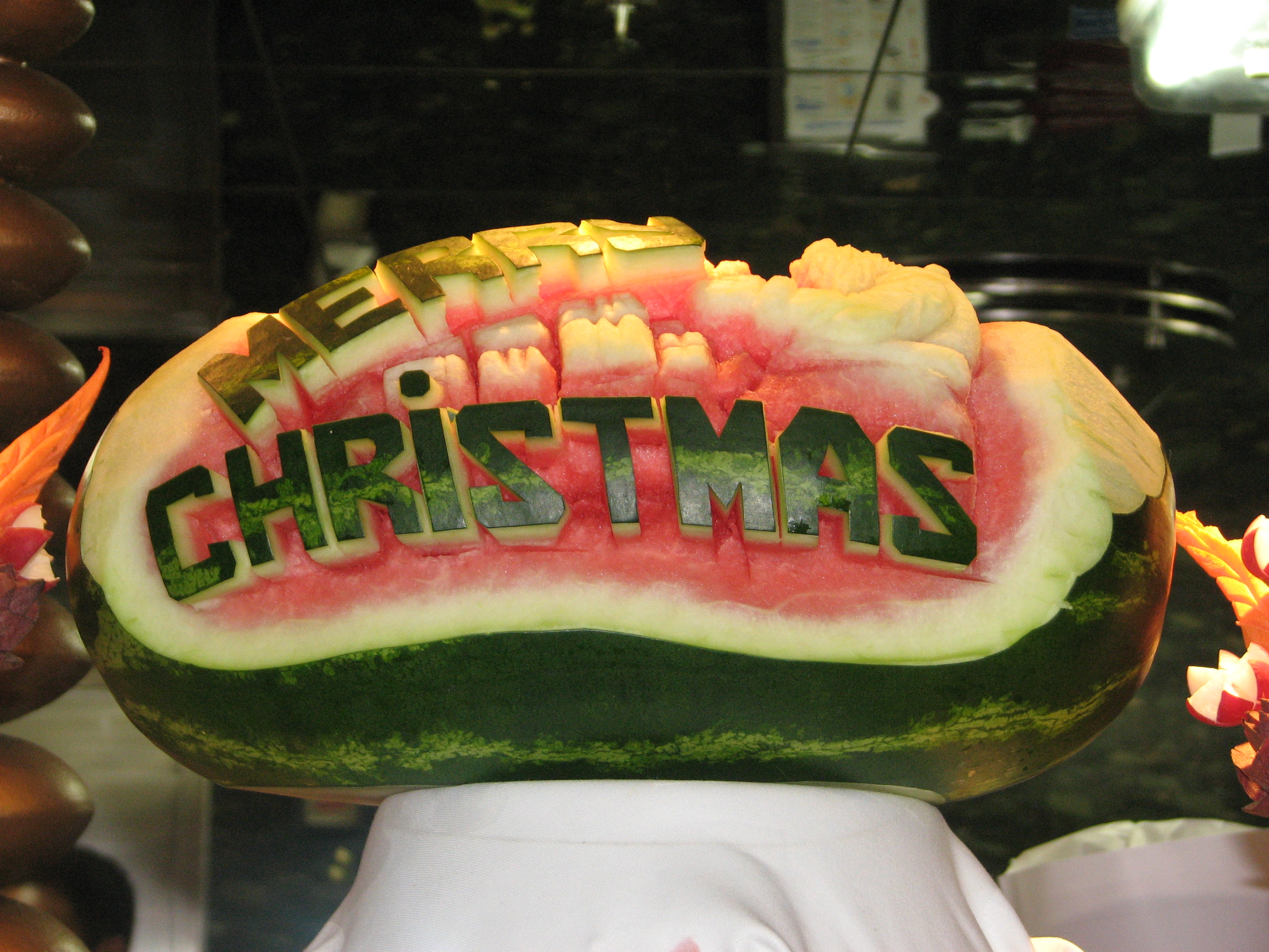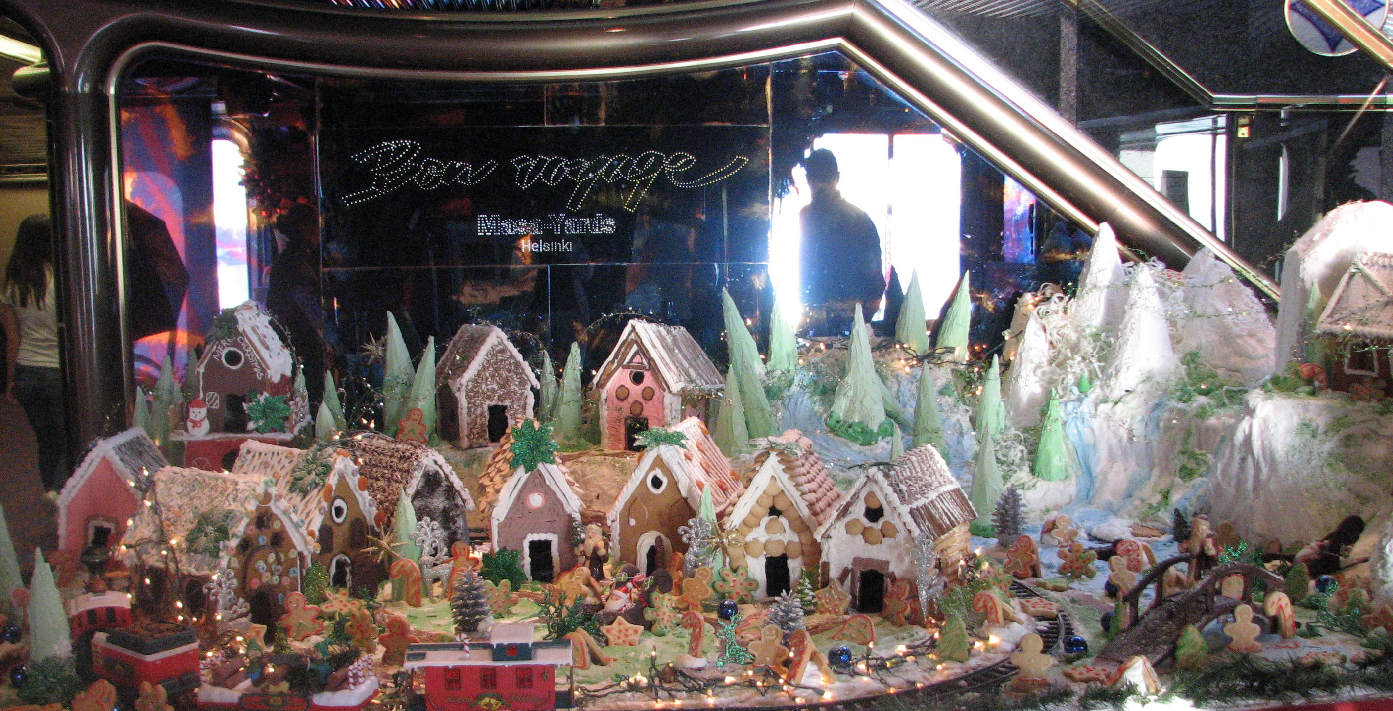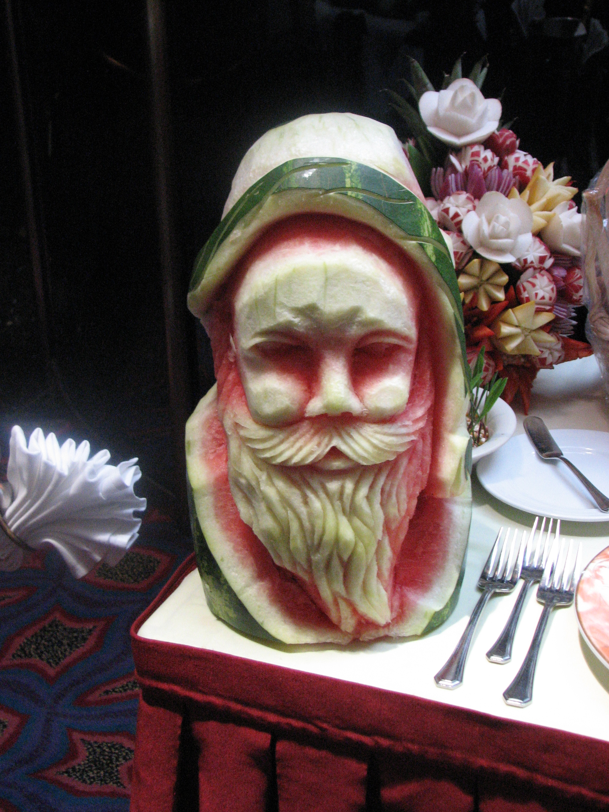 The ship was decorated beautifully for Christmas – including food sculptures.