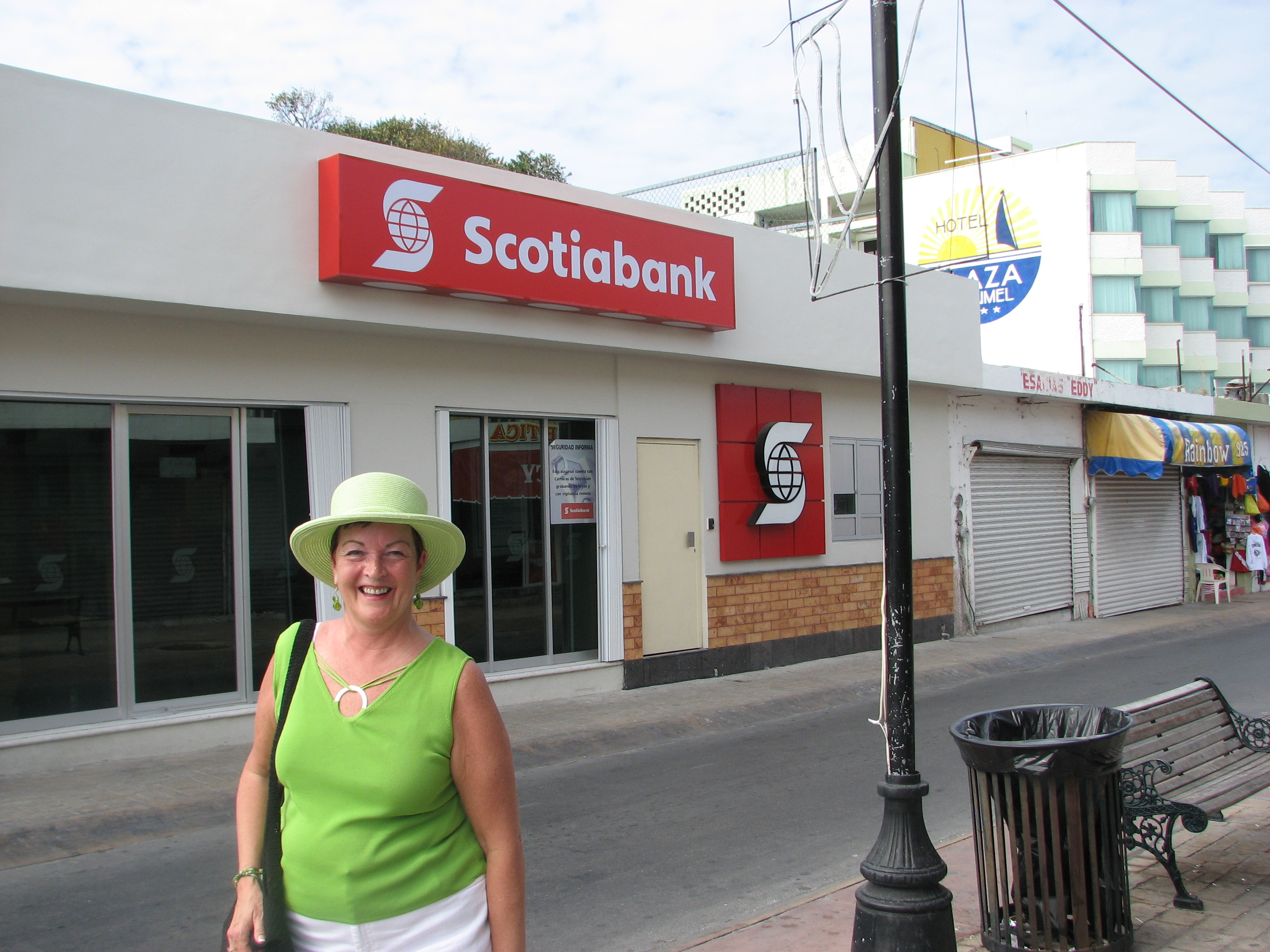 Our second day of the cruise (Christmas Day) we had our port visit in Cozumel, Mexico. It was a gorgeous 80 degree day and we spent the morning walking and shopping along the main road by the dock followed by lunch on the ship. We noticed a Starbucks so we came back ashore after lunch to use their free WiFi. I took shots of Christmas decorations while in the town. We even found the Bank of Nova Scotia.