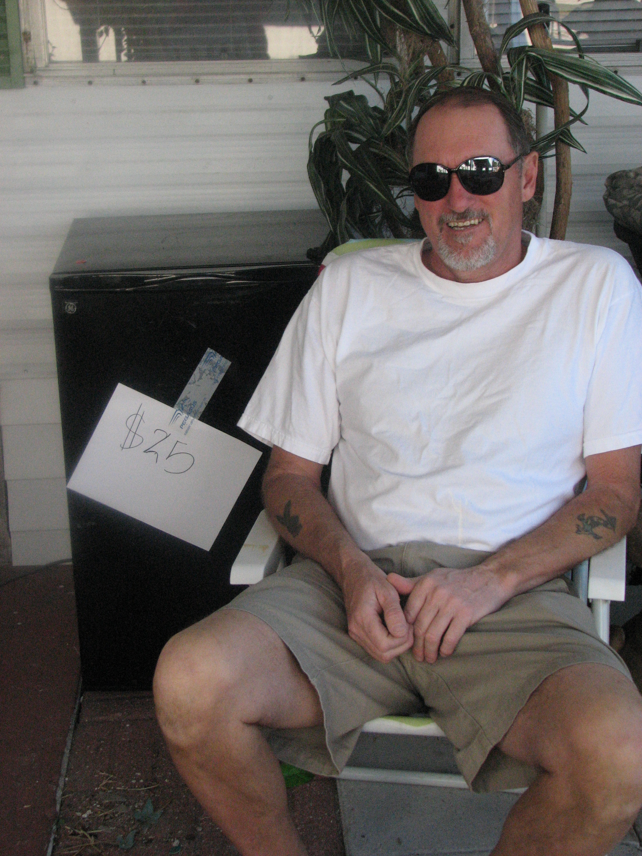 I have been waiting 6 months for the fun experience of yard sales in Florida and it didn’t disappoint. As usual you can often get just what you want – like real shopping – or another item you don’t really need. I tried to curtail purchases so passed by lots until I saw a small silver revere bowl (about 3 in diameter) for a $1. Since I use them at home for nuts or candy I decided to buy – when I went to pay, the lady pointed to the small pile of silver plates and indicated that the one on top went with the bowl – so I got a 12″ silver plate with a niche for the bowl too (like an old fashioned dip and chip set). The best purchase of the day was a large black bar fridge for Dave to keep his beer and coke. We had intended to buy one as the main fridge always overflows with the beer and it became a problem. The other bonus was that it cost only $25.