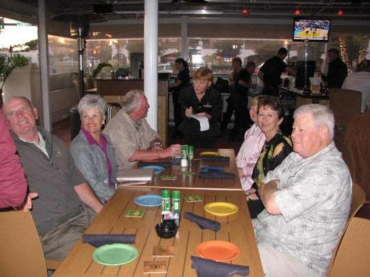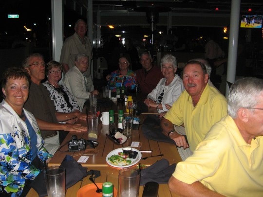Tonight we sent Mary and Bob off in style with a night at the Pineapples Grill. Eighteen of us spent a great evening listening to Sammie J and the Guys on the outdoor patio of the new restaurant.