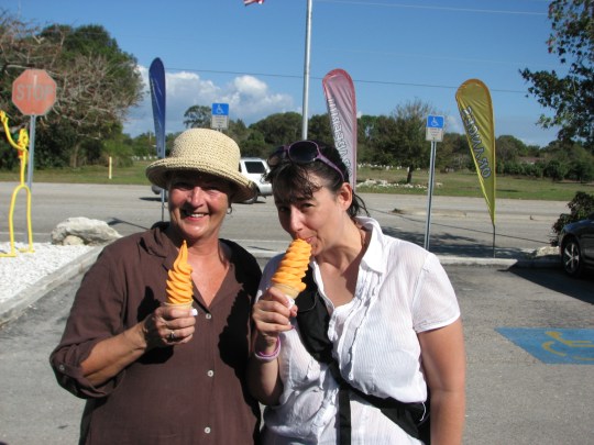 Tara spent the post marathon week with us. For three days we did lots of beach time and enjoyed the fabulous weather. After two beach outings we went to Nokomis Groves for an orange ice cream. They have been in business for 63 years and it is a very busy spot after a day at the beach. Tara wanted to spend her last night at Olive Garden so off we went with her and the Munroes (who she has known for most of her life). We really enjoyed having her with us and hope that the next trip will be even longer as there are lots of things we want to do.