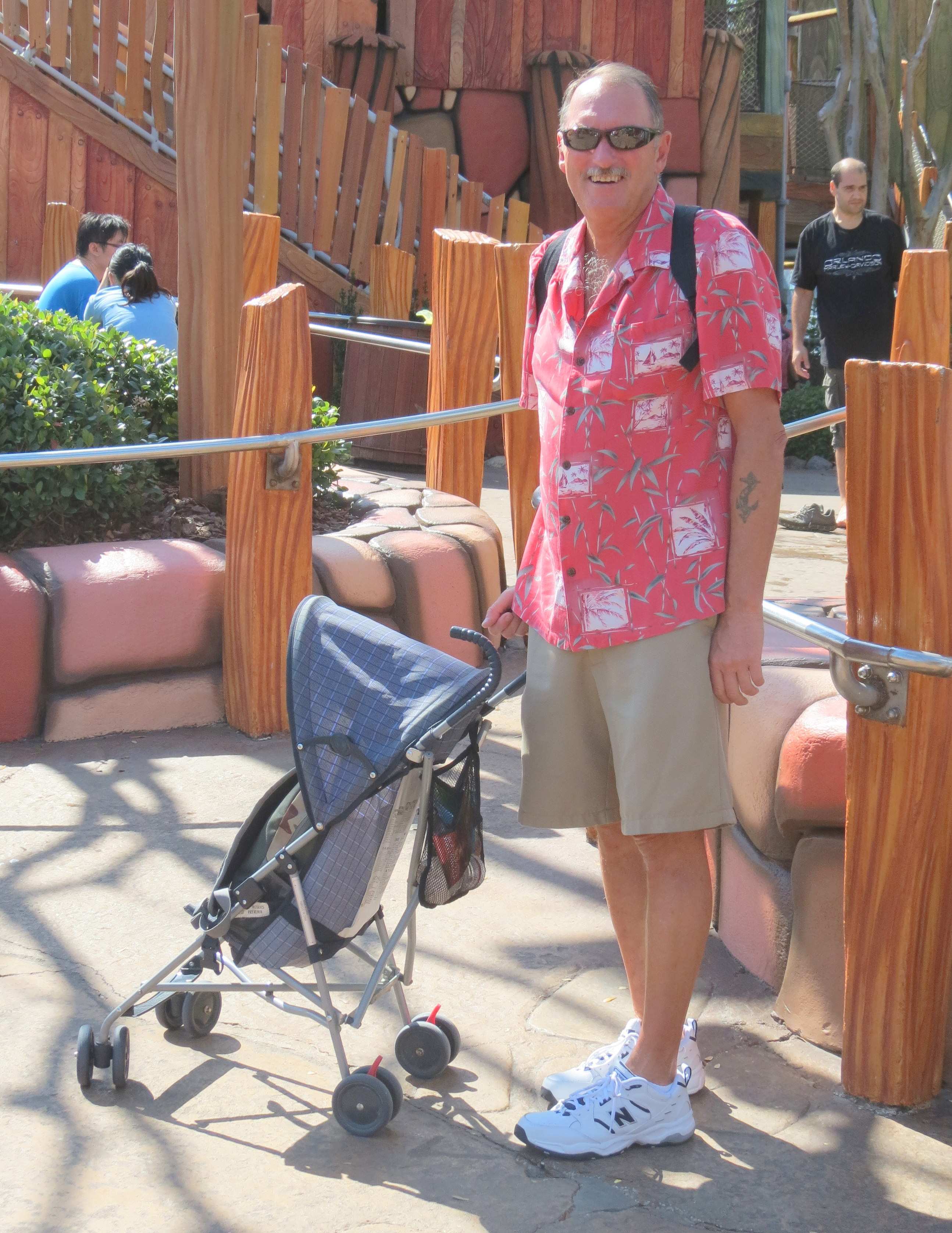We met up with the gang as they took the Popeye & Bluto Bilge-Rat Barge raft ride. To help them out we looked after their stuff while they got wet. Here’s a pic of Dave I haven’t ever seen before – doesn’t he look great manning a stroller!