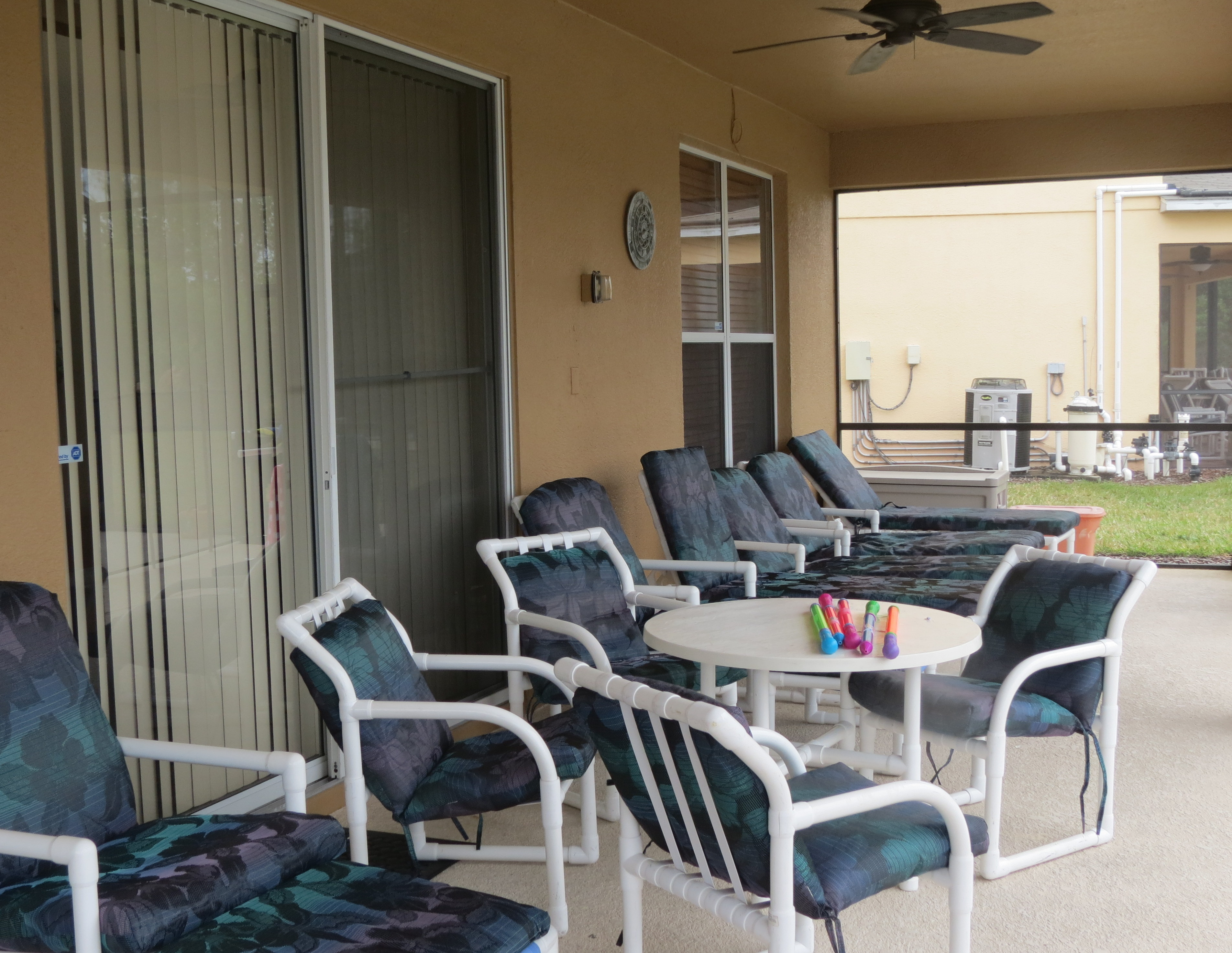 Today was cloudy but hot so some pool time was in order this afternoon. The 2 mothers and their 5 kids went to the Magic Kingdom this am so we did some taxi service as one of the vehicles went to the Daytona 500 with the guys. Dave and I took Madeline and Sophia to the gates where the others were waiting. And those of you who know Dave well, will appreciate how much fun it was having him so “available” to do whatever I wanted as we waited for the pick-up phone call. He willingly took me to the 192 Flea Market and told me to take my time! Holy Cow! I don’t hear that often. (Note to our Friday Dominoes Gang – Garth/Florence, Claire/Ron, Judy/Mike and Liz Earl – we bought a 15 set of dominoes and the 6’s are green and the 9’s are yellow – get out the calculators this is going to be fun!). The pool and deck area are great here at Tuscany Palms so it is getting lots of use. Before the kids came I bought each of them a water pump at the dollar store – THE BEST $5 I EVER SPENT – those darn things works super great and all five kids are having a ball with them.