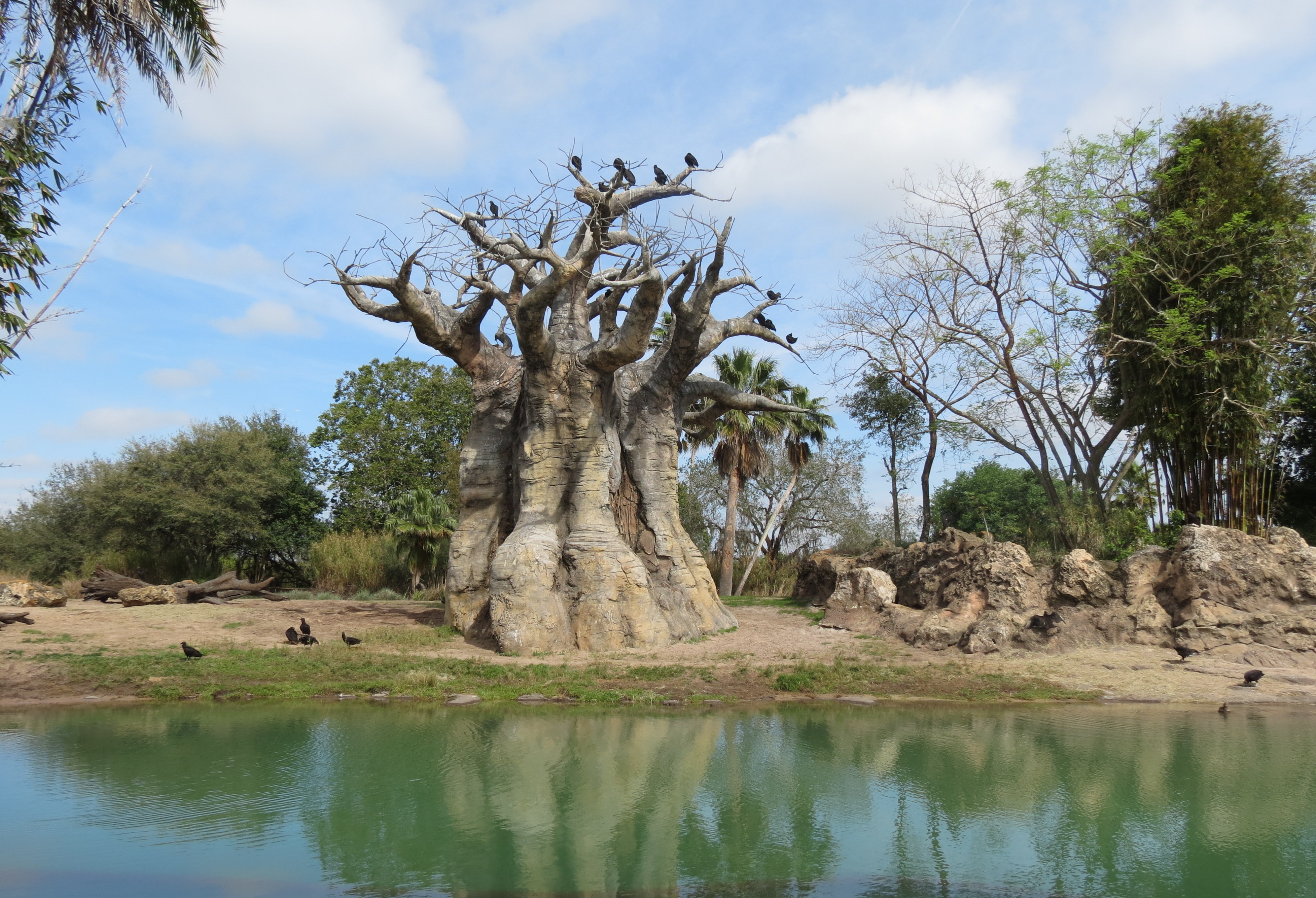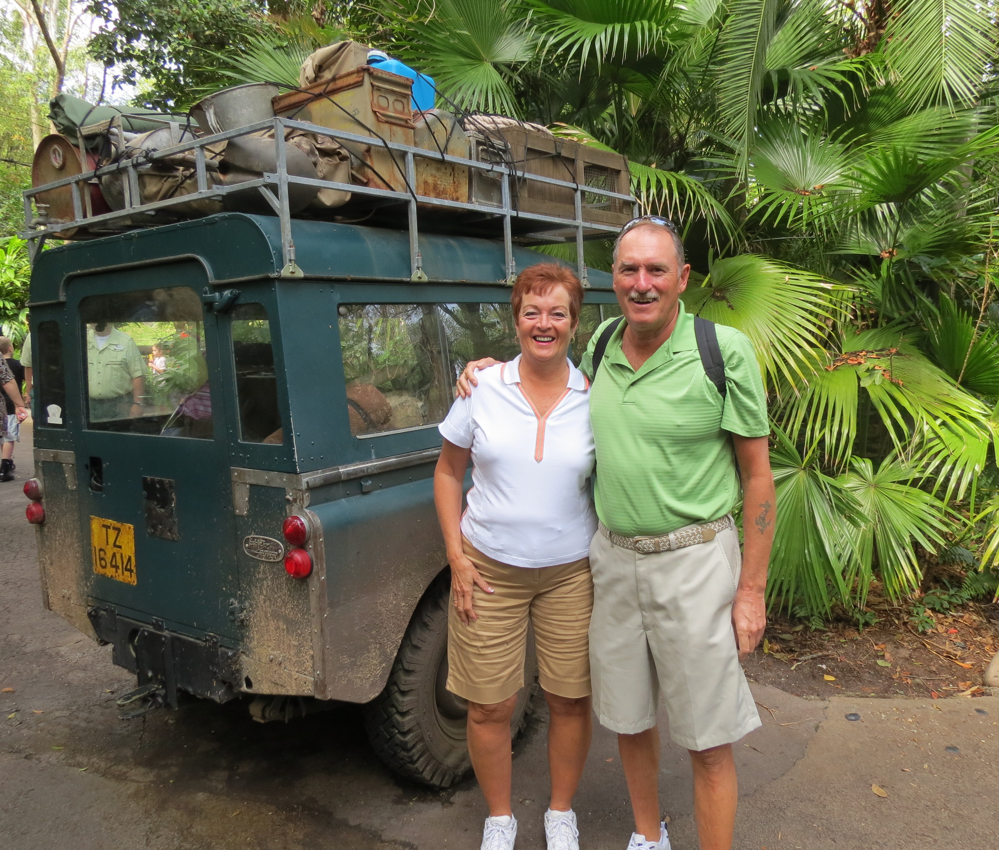 Today we headed to Animal Kingdom – we hadn’t been there for 11 years so were ready for the animals. Since so much of Disney is make-believe we were very pleased to send the day with real animals/birds/insects etc. Dave watches tons of Animal Planet so he is so knowledgeable that it is fun to be with him in a place like this. We took the Safaris ride through the area called the Kilimanjaro Safaris and then a walk called Pangani Forest Exploration Trail.