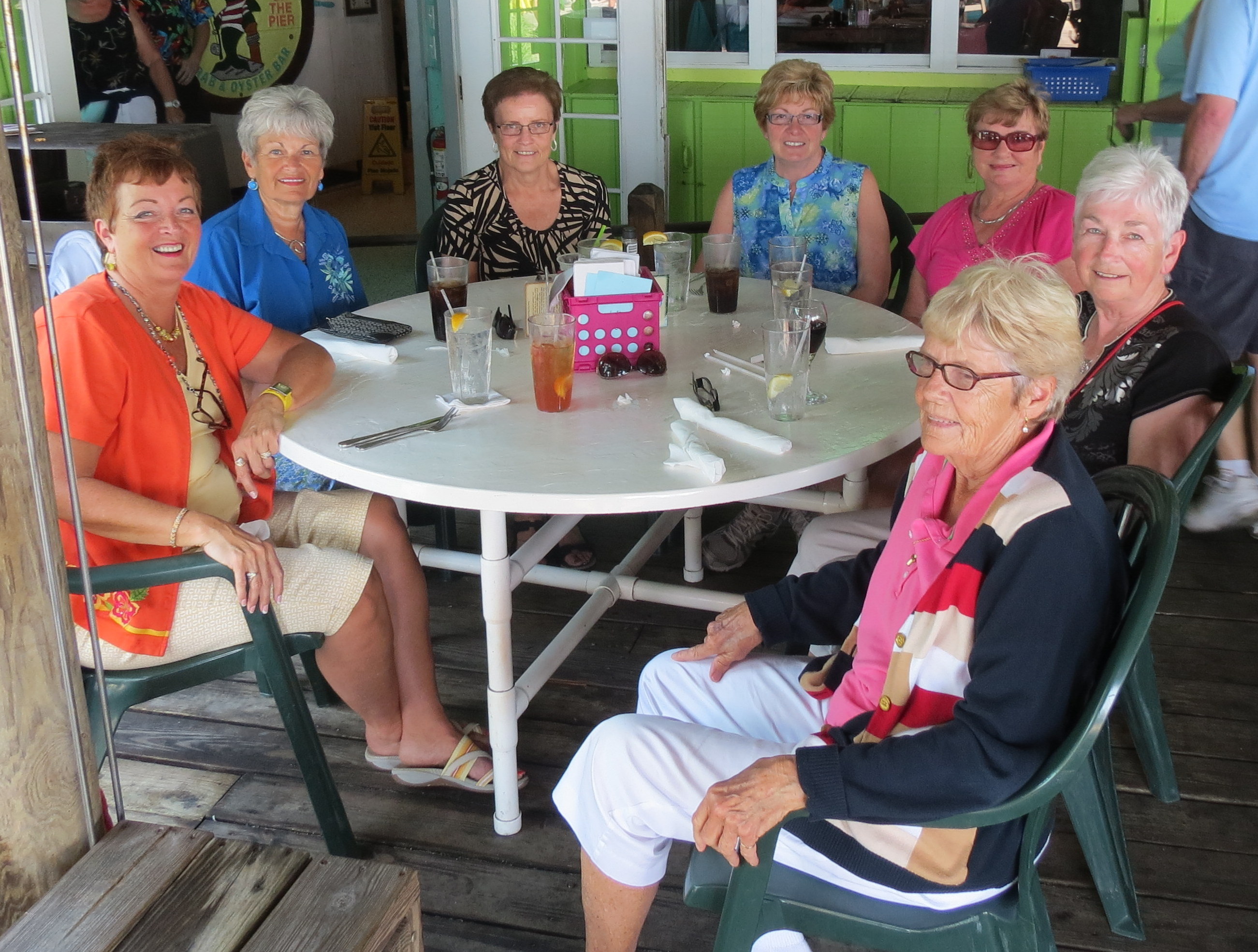 Sadly the 10 day visit of the Greenans is over and they have gone home to Dartmouth. It was wonderful having them both here even though the weather wasn’t as nice as we had hoped. I can honestly say that the week flew by and we were very busy and there were many laughs along the way. On Friday night we went out for the “last supper” at the Burgundy Cafe. We gathered for a pic before going out and NO the gals didn’t coordinate their outfits in advance!