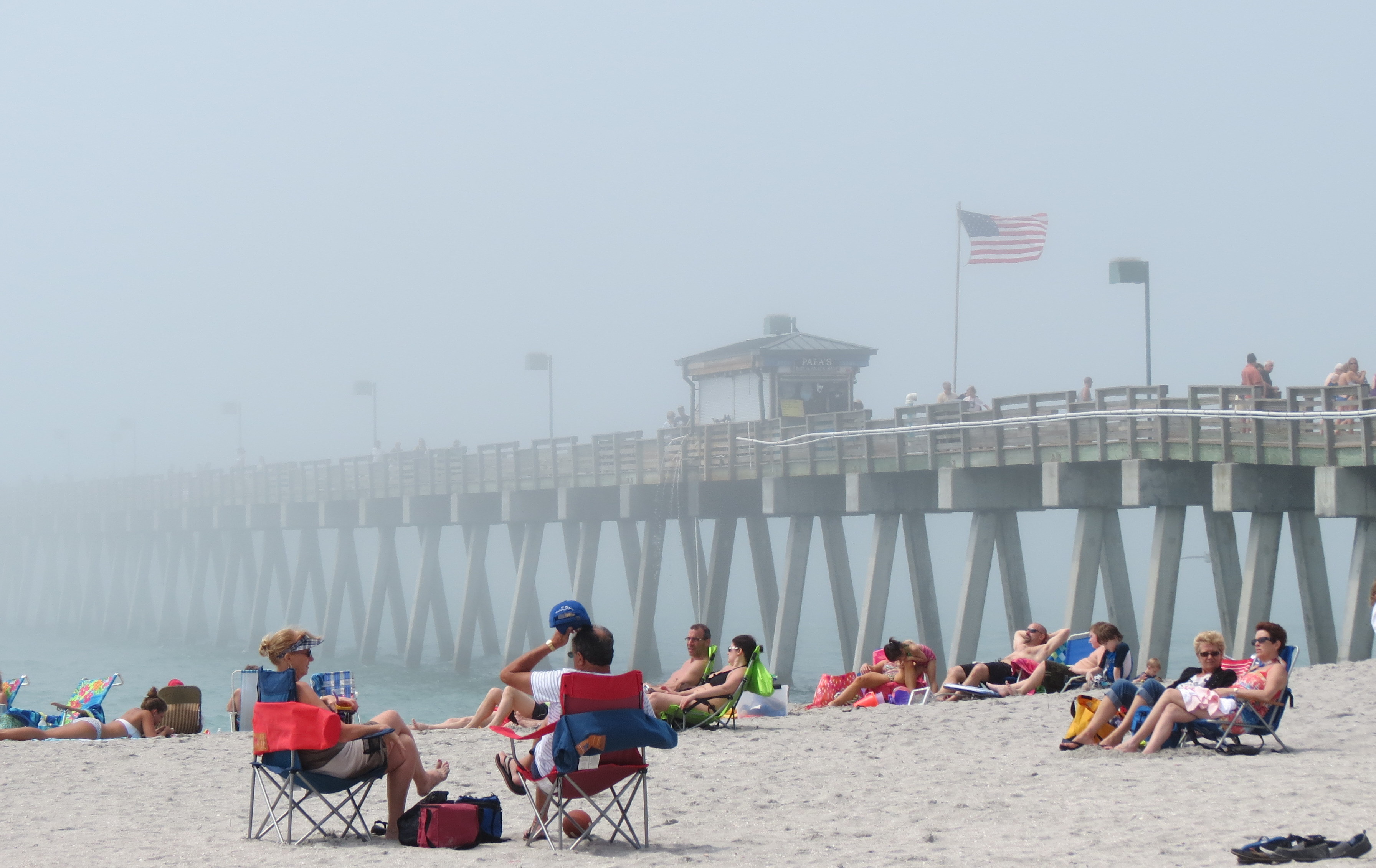 Since today (Saturday) was the last day the gals went to lunch at Sharky’s so that Claire could enjoy the beach one last time. There was a huge fog bank just off shore so the end of the Venice Pier was shrouded in fog – an unusual sight!