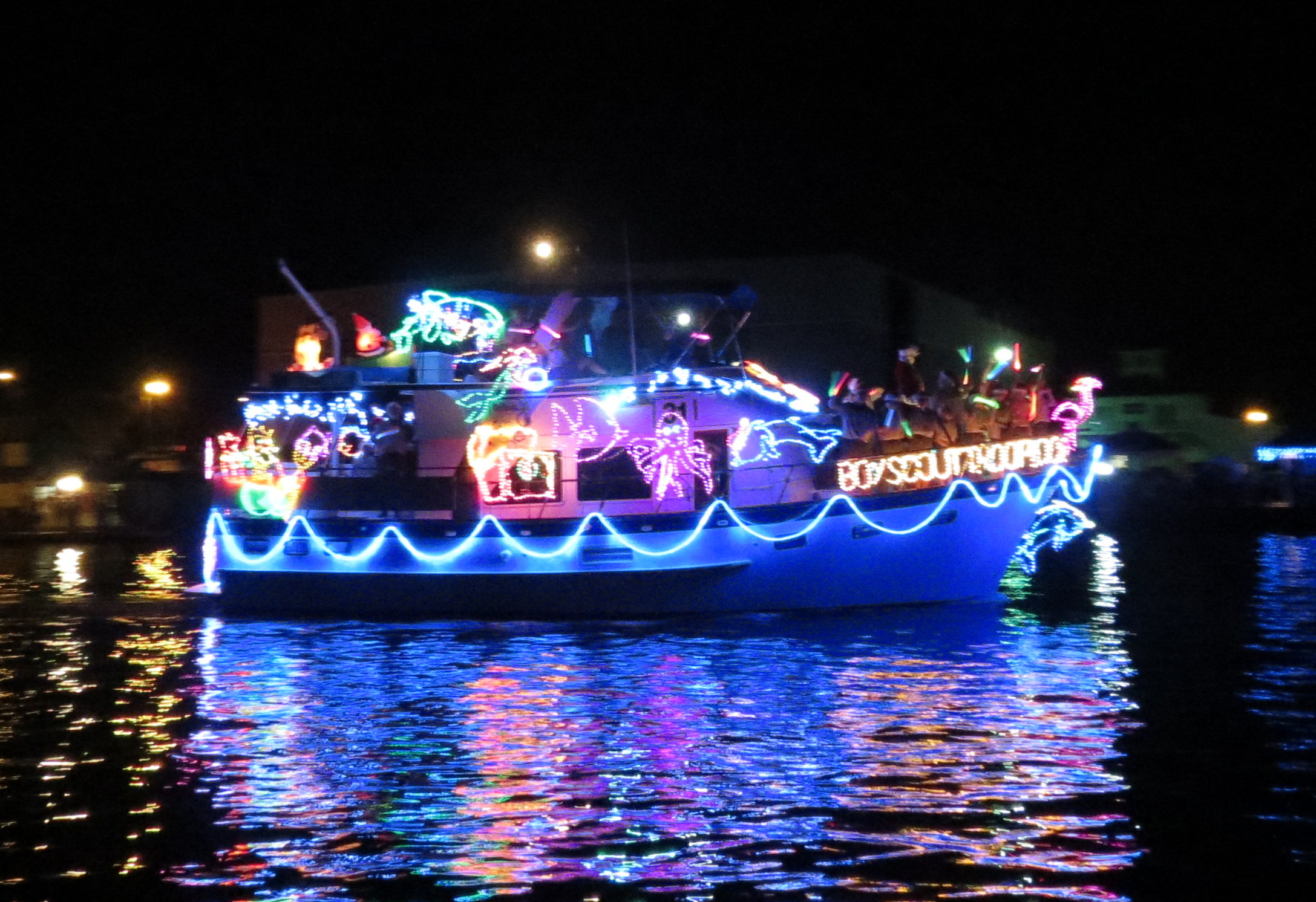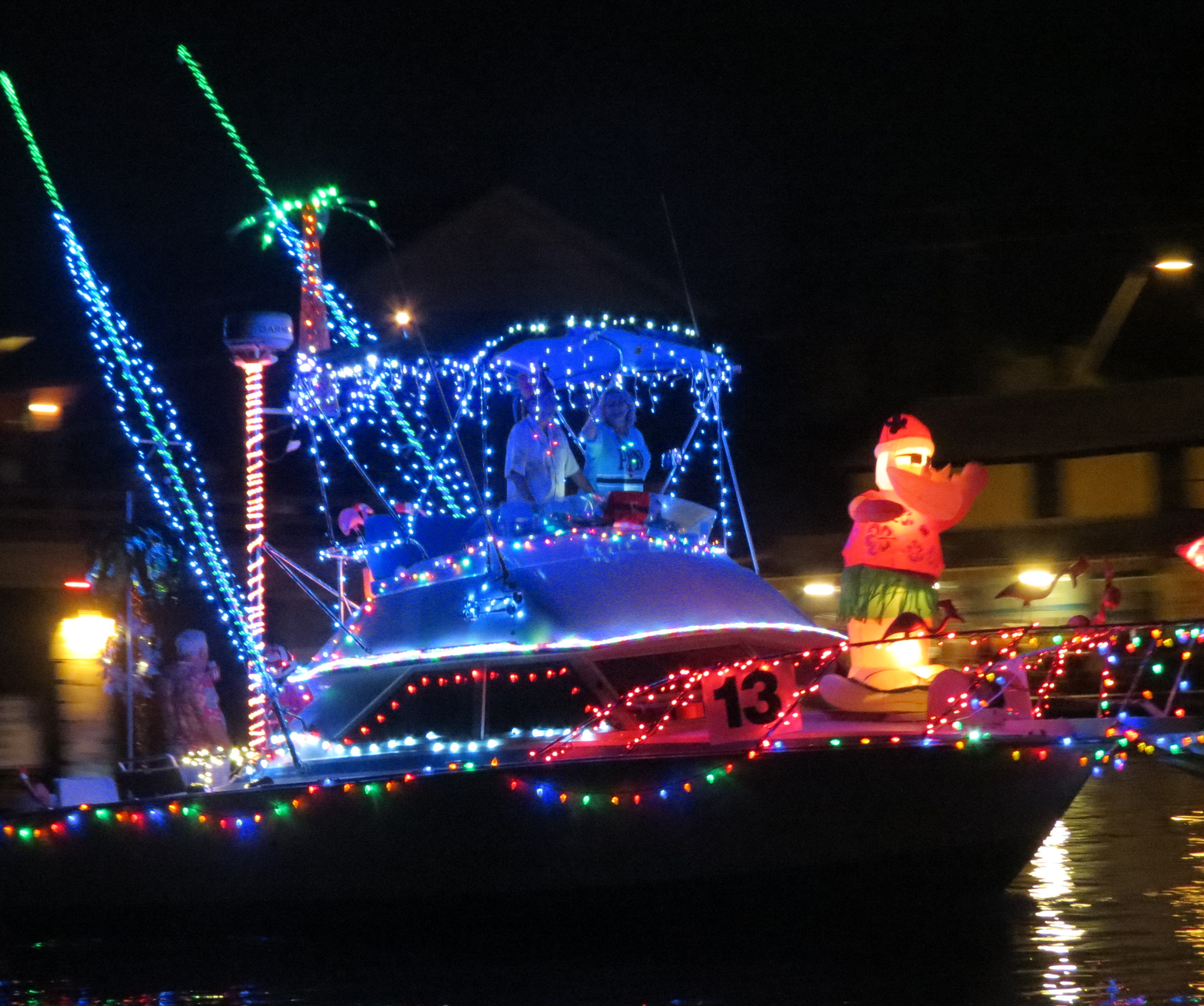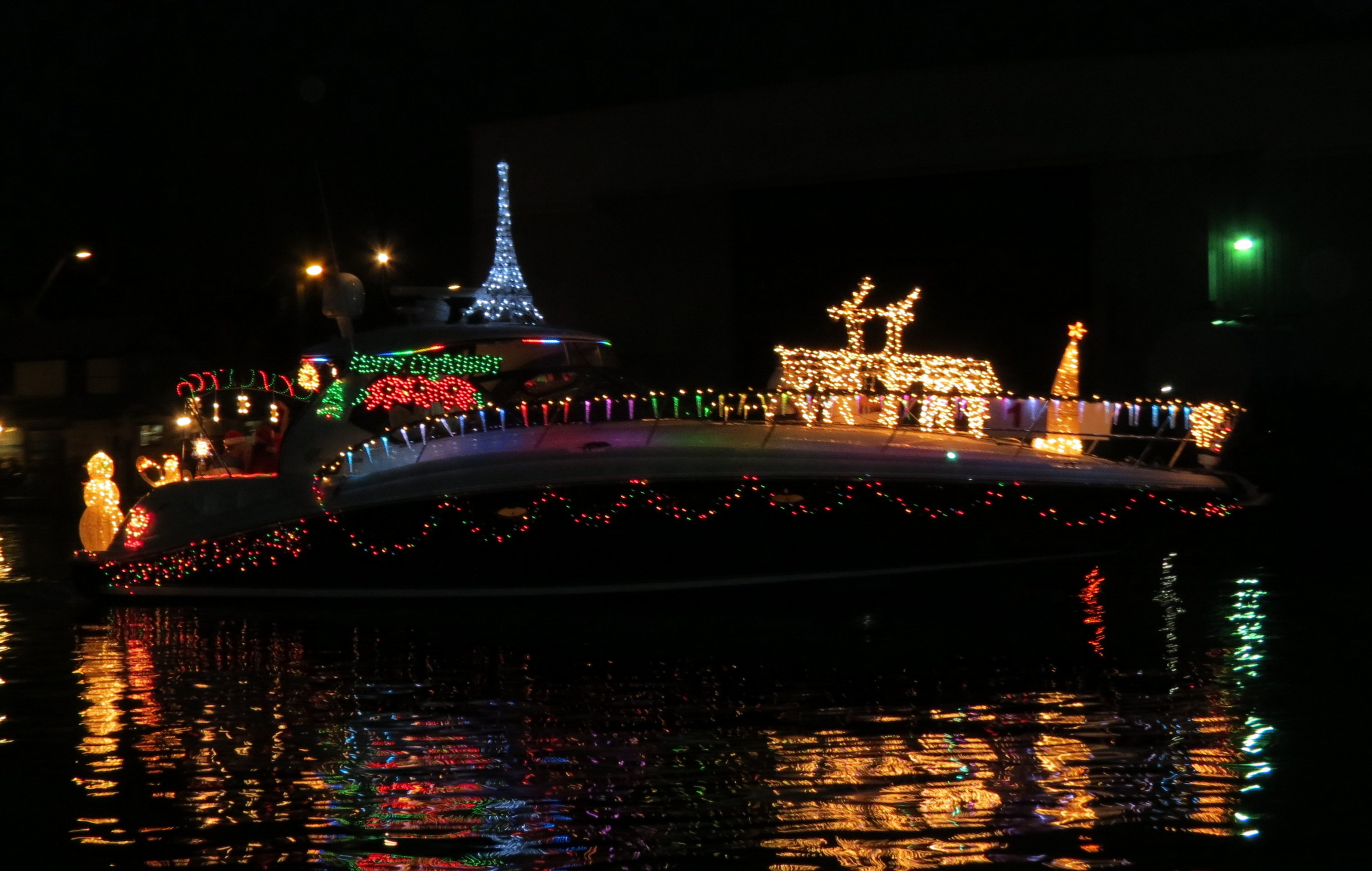 We only had to walk across the street to where our chairs were waiting and there we settled in to wait for the first boats to motor past us. It is hard to imagine that this was our 6th parade and by far the warmest night. Over 50 well lit boats participated in this year’s event. It’s estimated that upwards of 60,000 people lined the route from Nokomis to Venice. This 25th year of the parade almost didn’t happen – clearly not from a lack of spectators, but because there were not enough vessels. A campaign to get more participants worked!