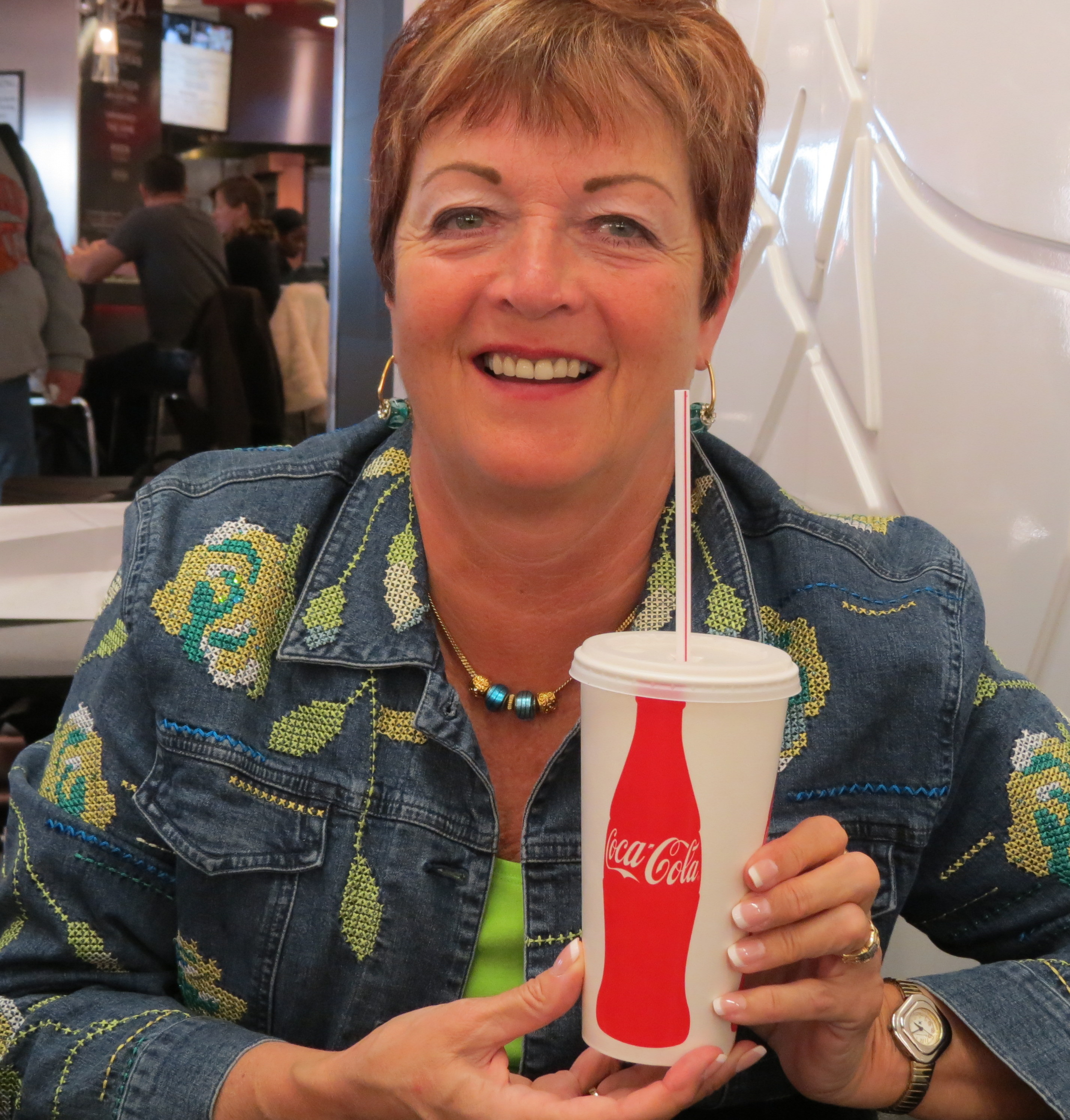 Having supper at the Atlanta airport (please note,Trevor my nephew from Coke, that I stayed with the drink Coke products only rule – but then again it was hard to avoid – the Delta service was all Coke products including the festive Coke bears napkins but then again Atlanta is the headquarters for both Coke and Delta)