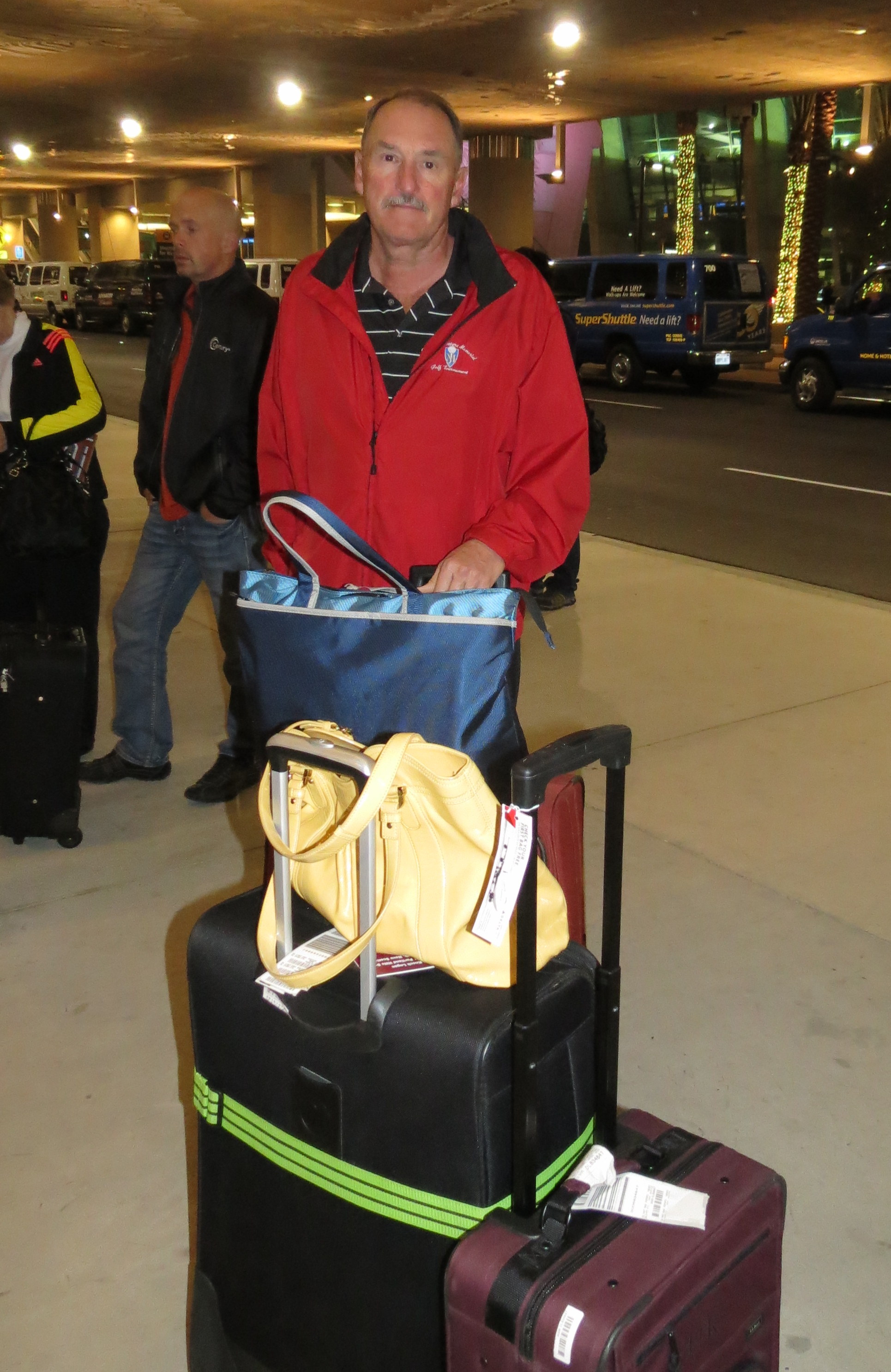 Dave with the luggage was we waited for the courtesy shuttle to take us to our hotel.
