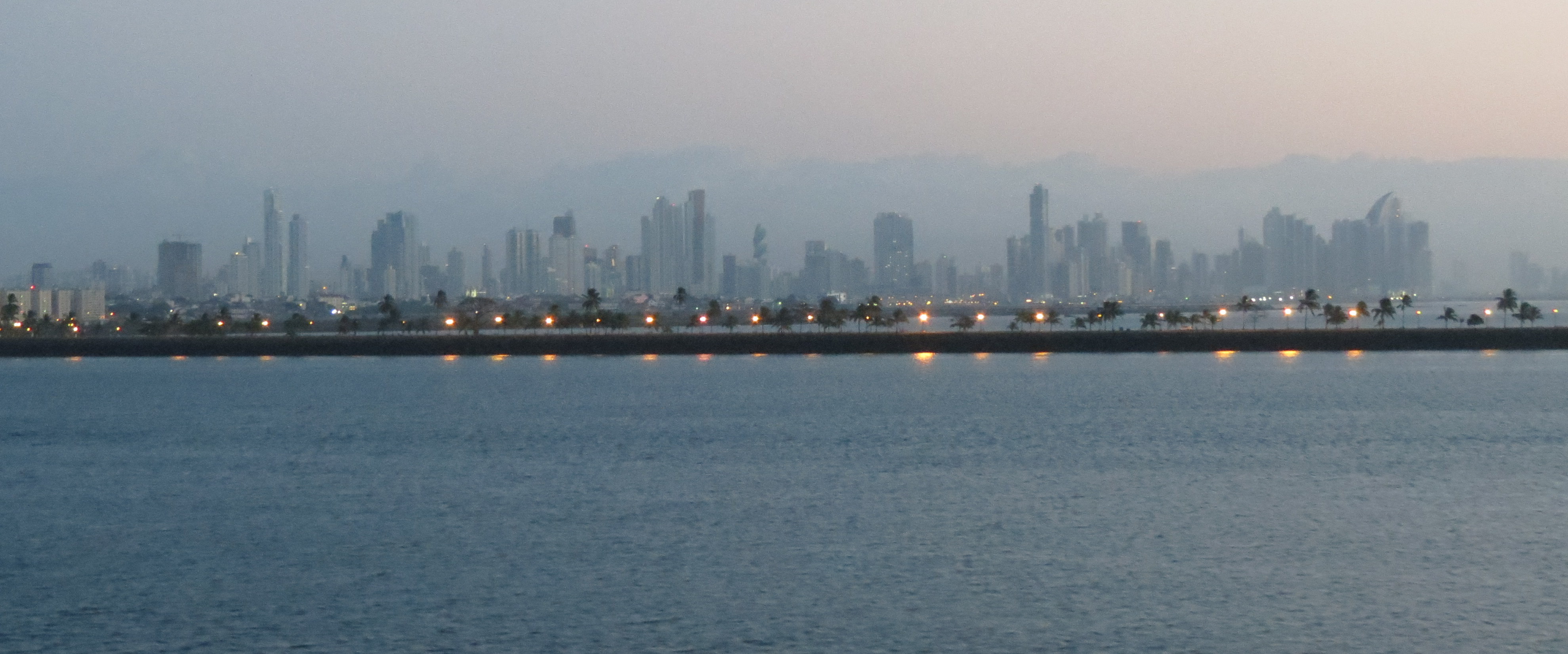 We entered the first locks at Panama City. (seen in the background)
