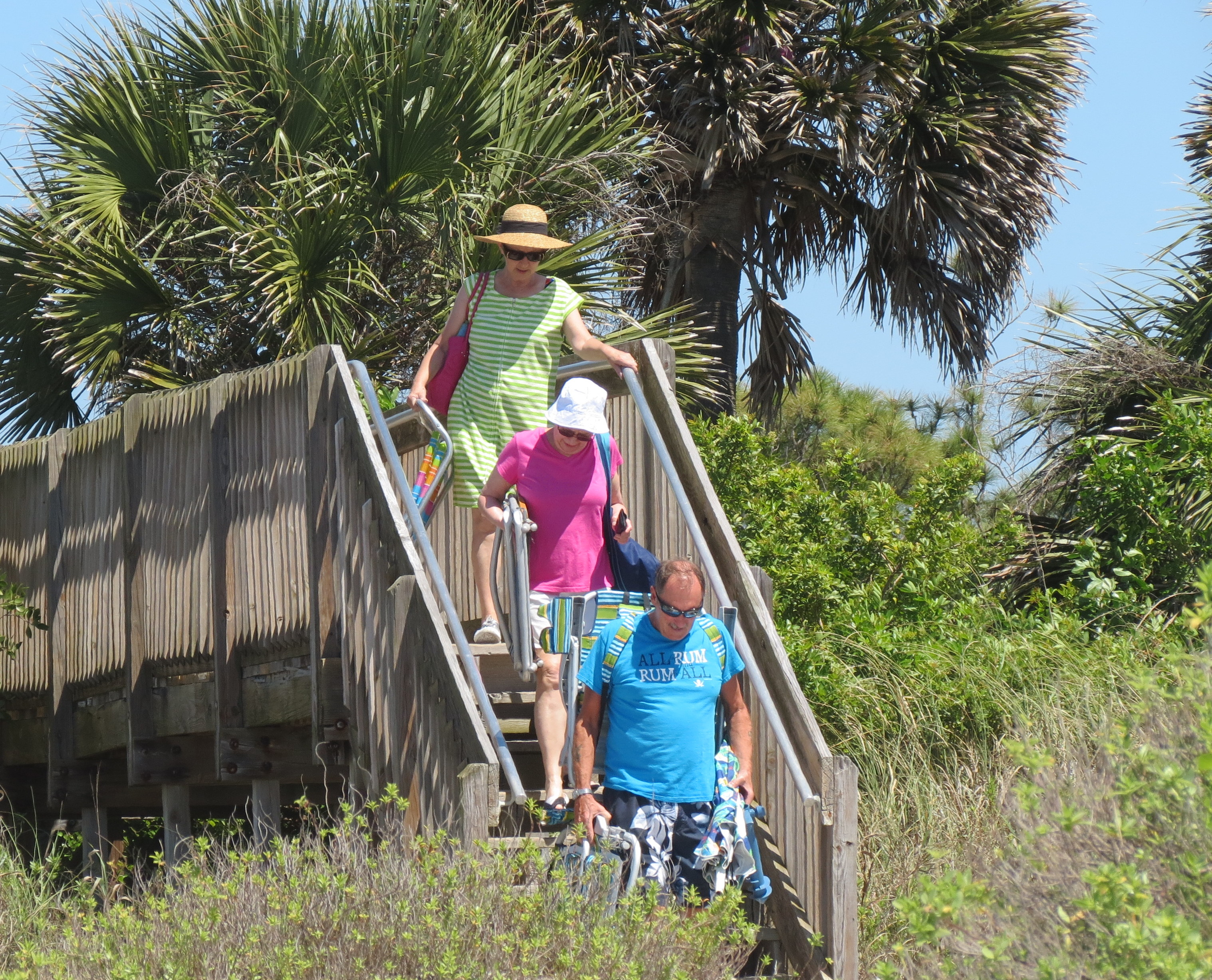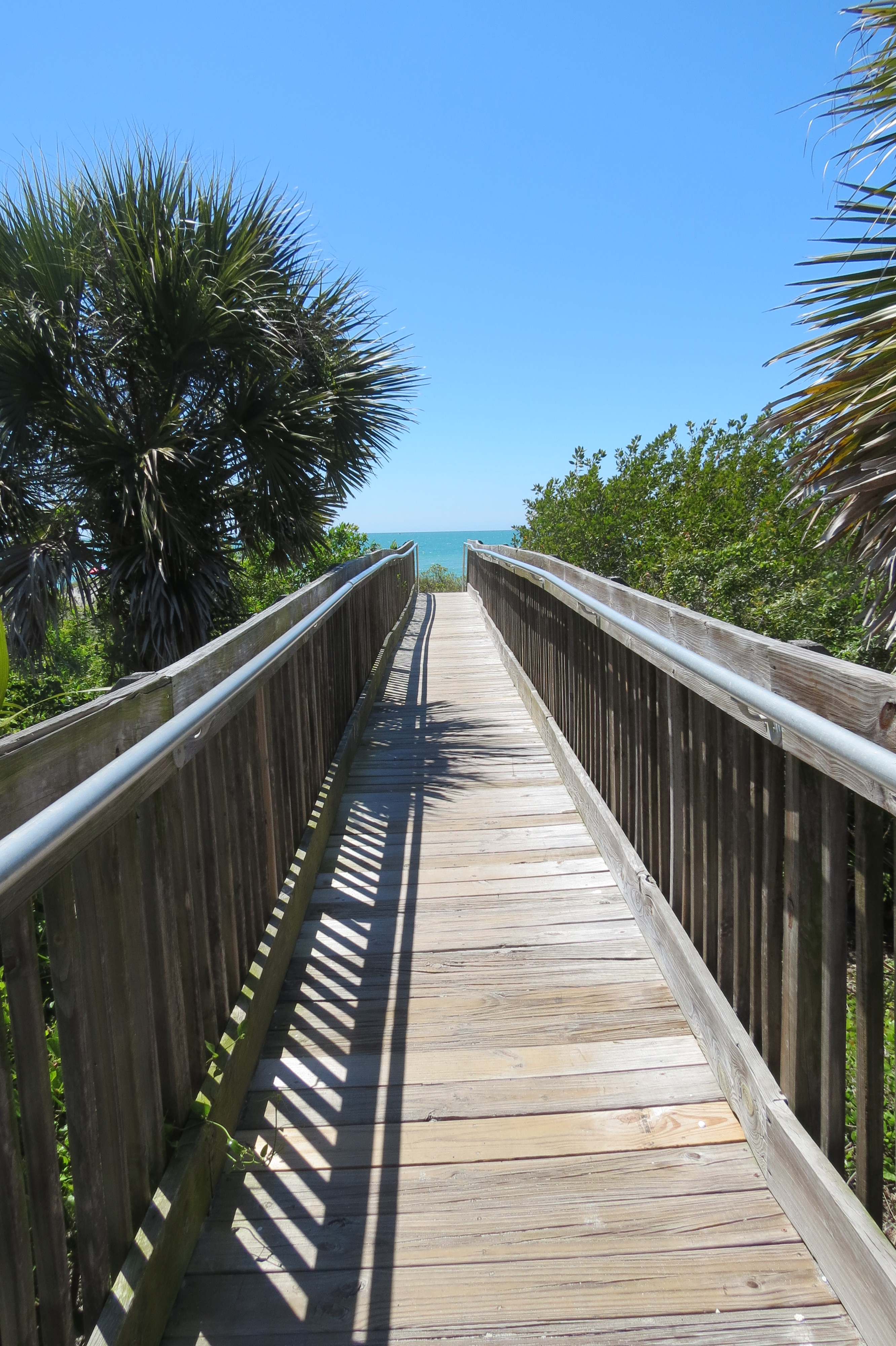 April is always beach time here in Venice. We have been to the beach for lots of visits by ourselves but also with an assortment of company who have spent time here with us. I never get tired of the walkway leading to the beach – no colours can beat the green of the trees, the white of the sand and the blue of the Gulf.