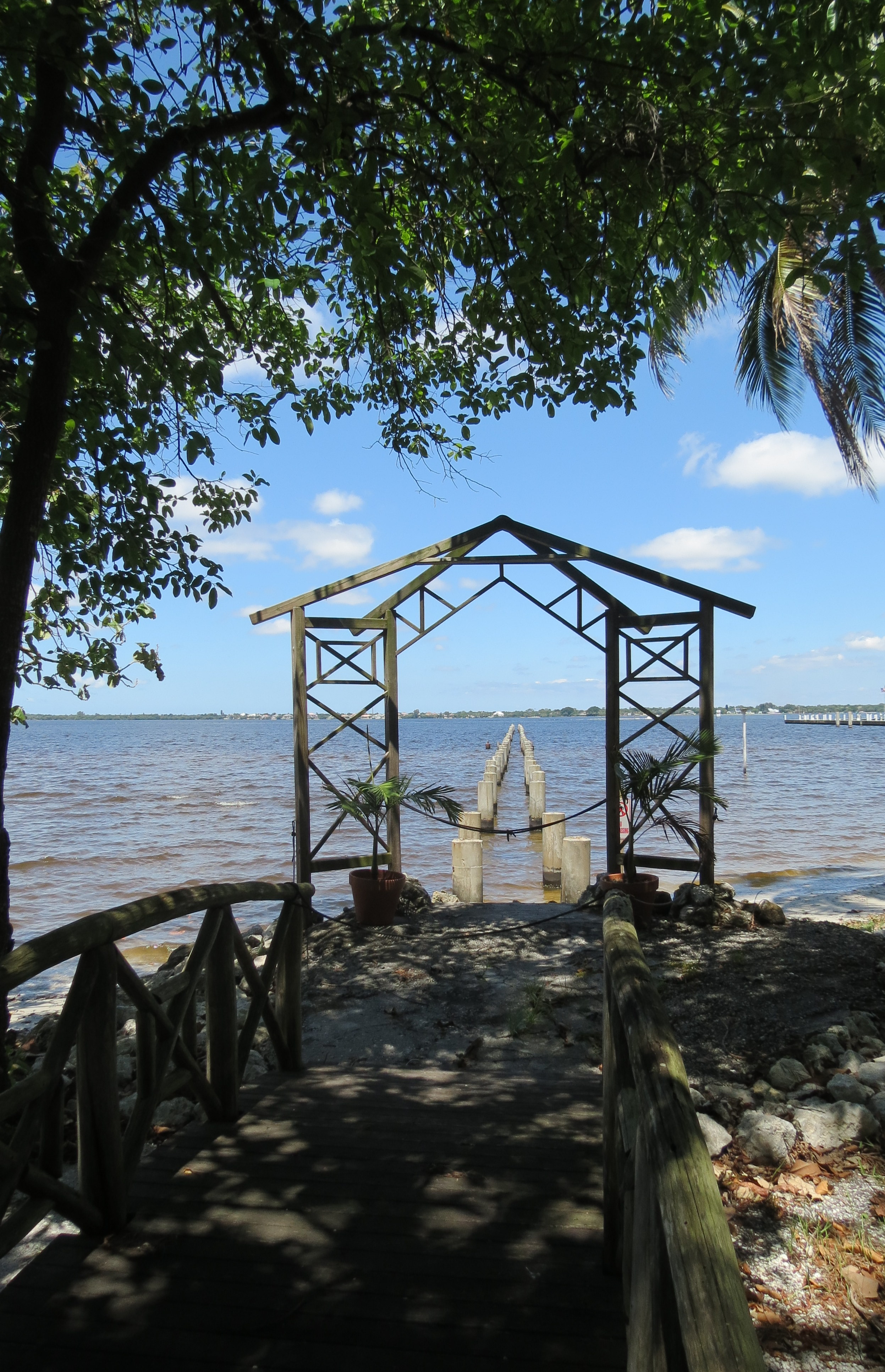 The Ford porch, adjacent to the vintage garage, offers a spectacular riverfront view of the Caloosahatchee River.