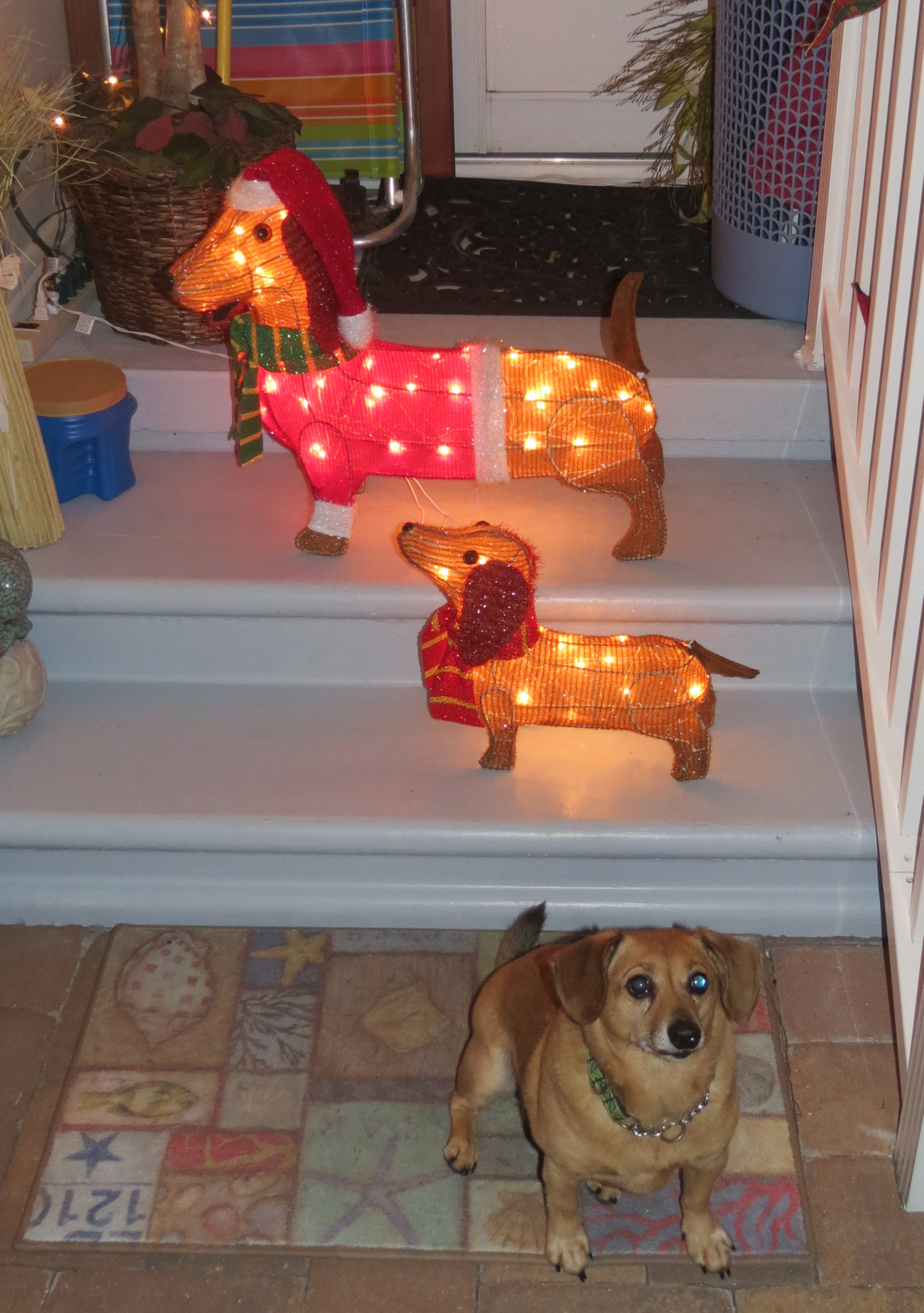 Marilyn found these Christmas dogs who resemble the real one, Cooper!