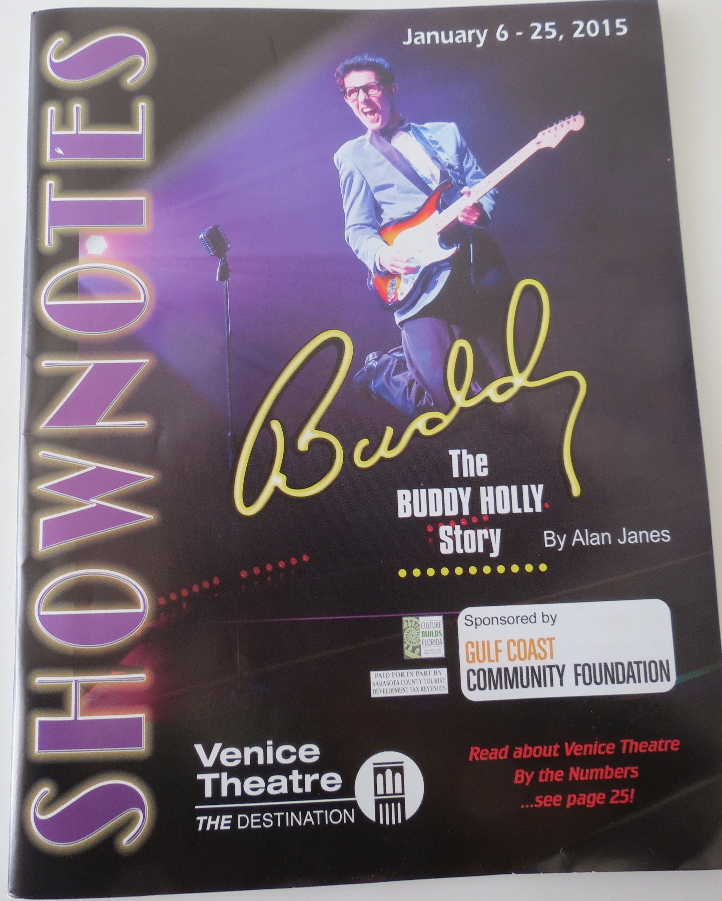 On Wednesday we were invited to dinner and theater with the Munroes and Rick and Norma Shalansky from Calgary/Largo. So we were off to the Venice Theatre to see the Buddy Holly Story – great music for sure – 4 standing ovations (which is an accomplishment here since most of the audience were seniors/super seniors like us and those old knees aren’t what they used to be. Thankfully they didn’t make us wait between them and just popped into the next ovation before we sat down again – LOL!)