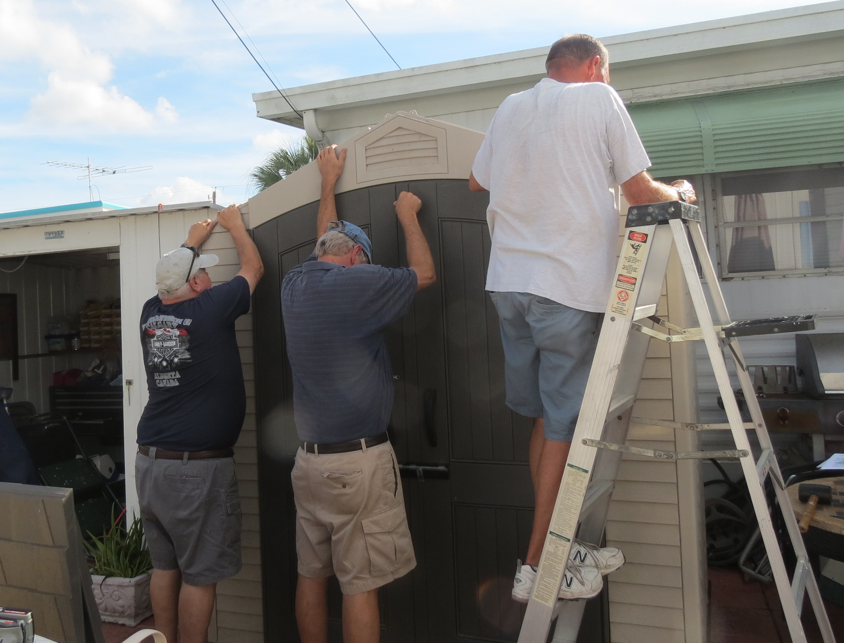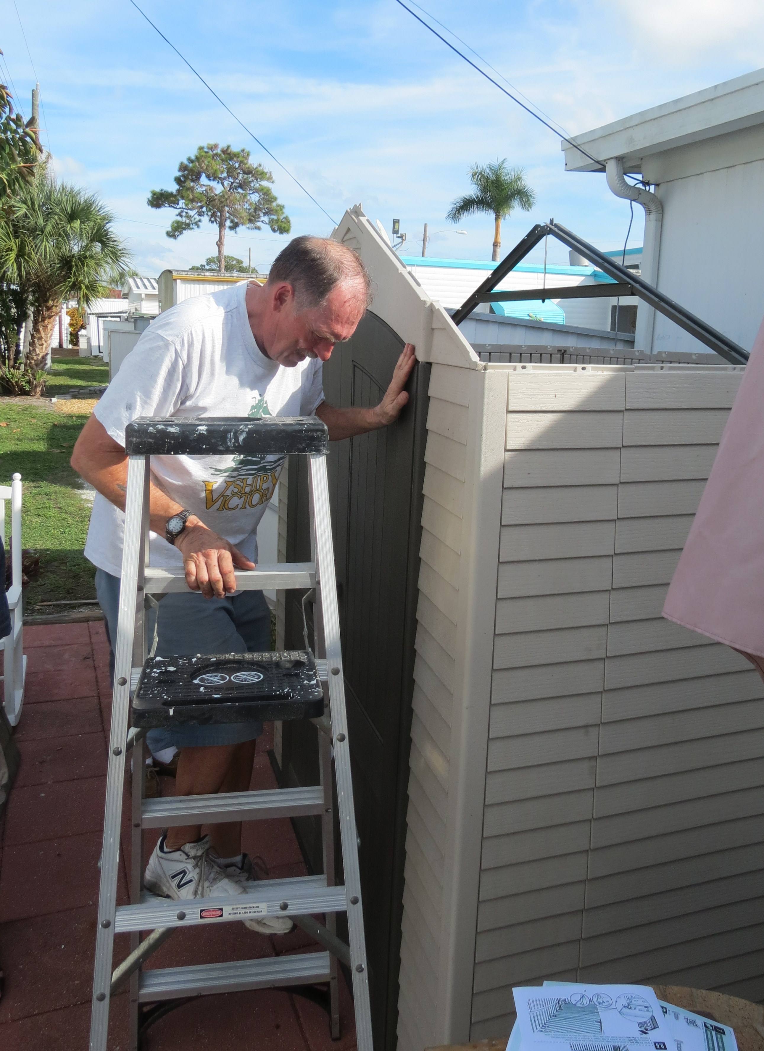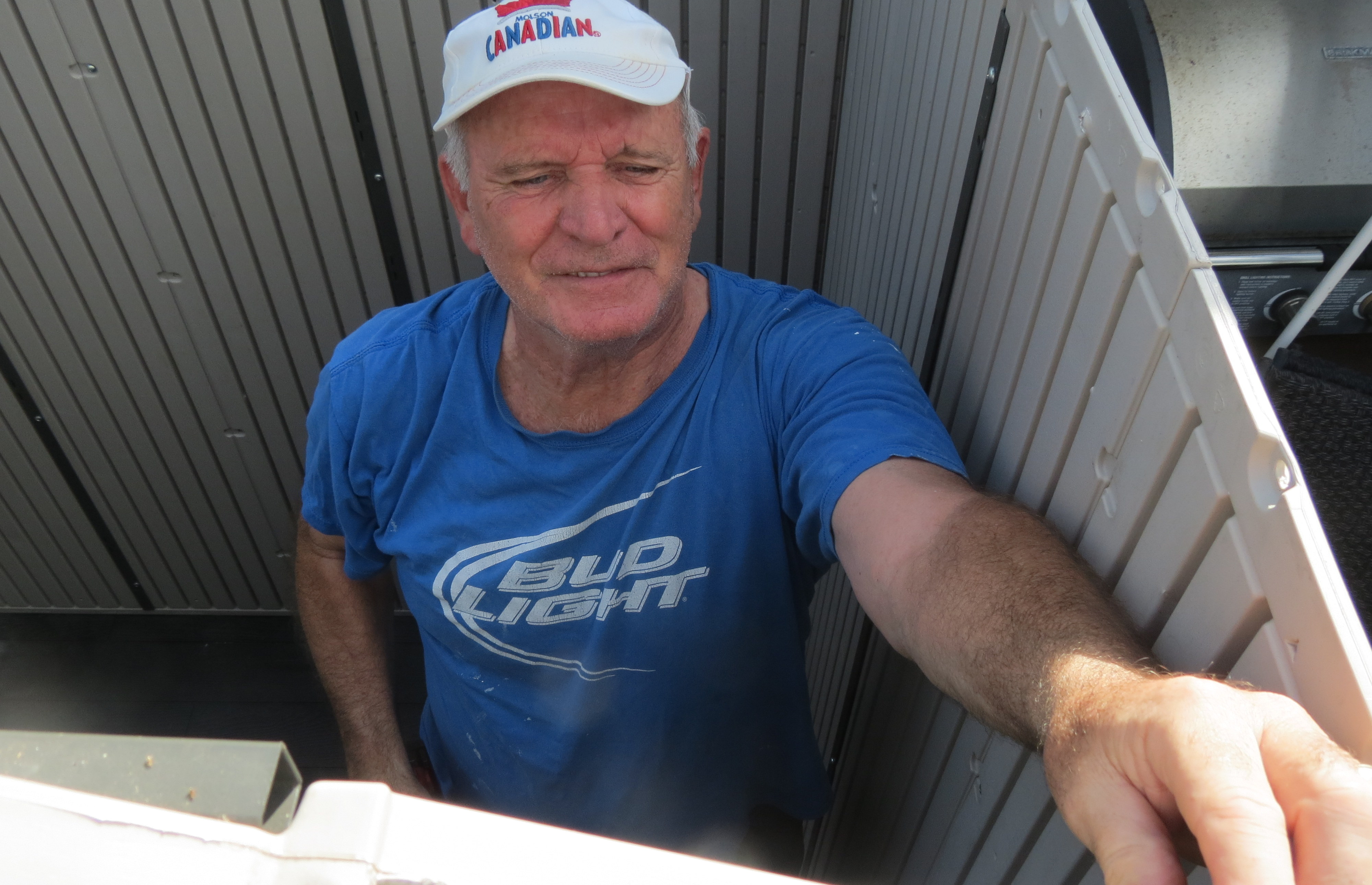 You know you have been somewhere a long time when you have to start replacing items you bought new when you moved in. With the exception of the dishwasher which has been replaced already, most things have lasted until now. Today Dave purchased a new BBQ – the other had literally died. I took these pictures of him putting it together and he said that there was something missing. I thought he meant a cruical part. He laughed and said “a 24 of beer” – referencing the typical amount of beer he and a buddy would drink when putting together BBQs in the old days when we were at Land of Evangeline Campground. It had always been a standing joke – that and the bag of pieces that they always had when they were finished.