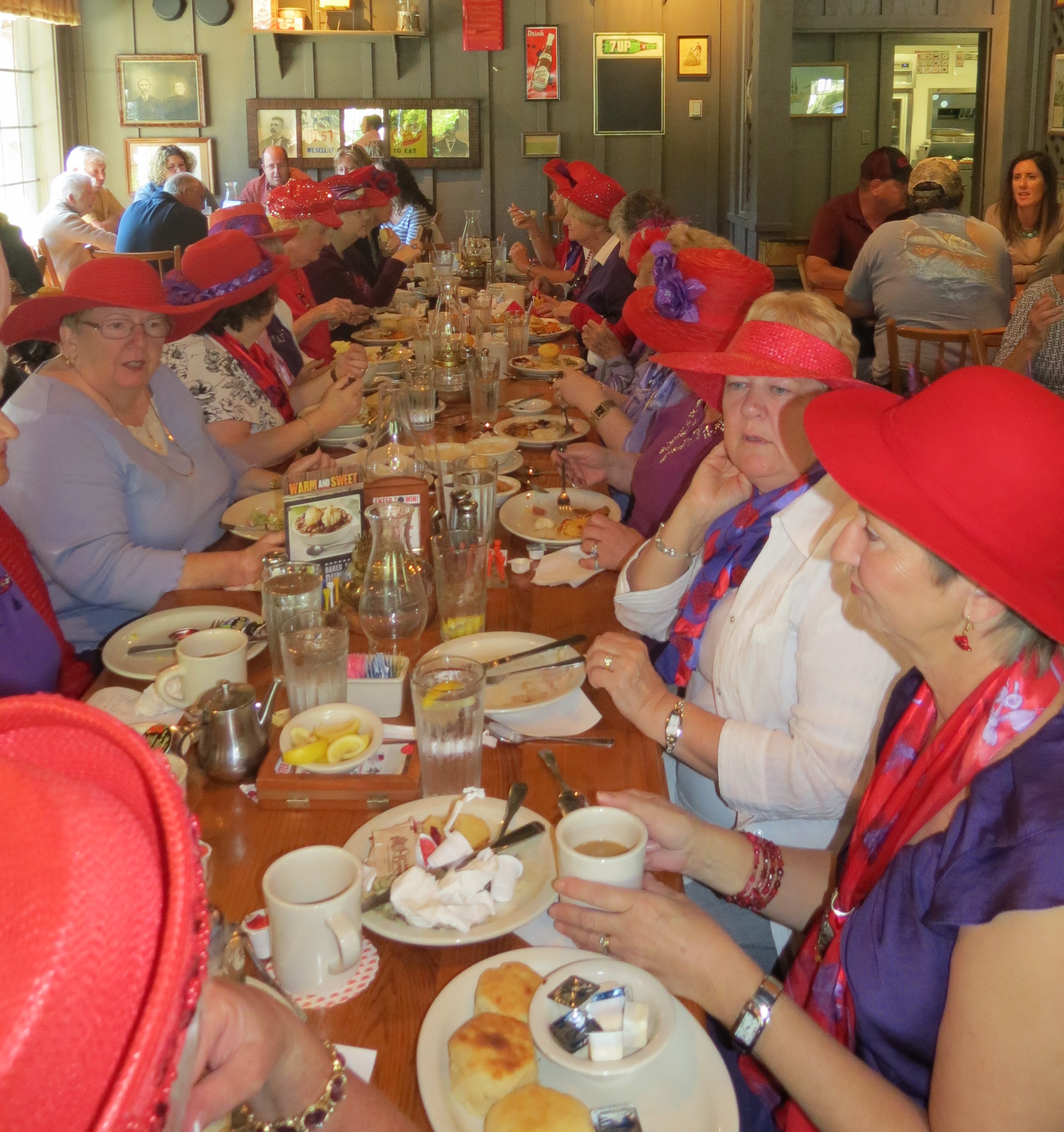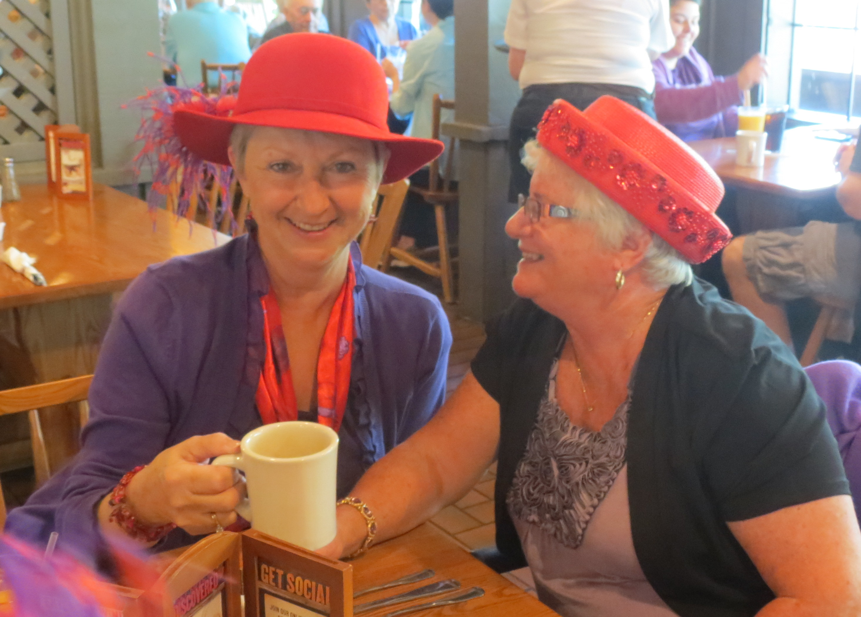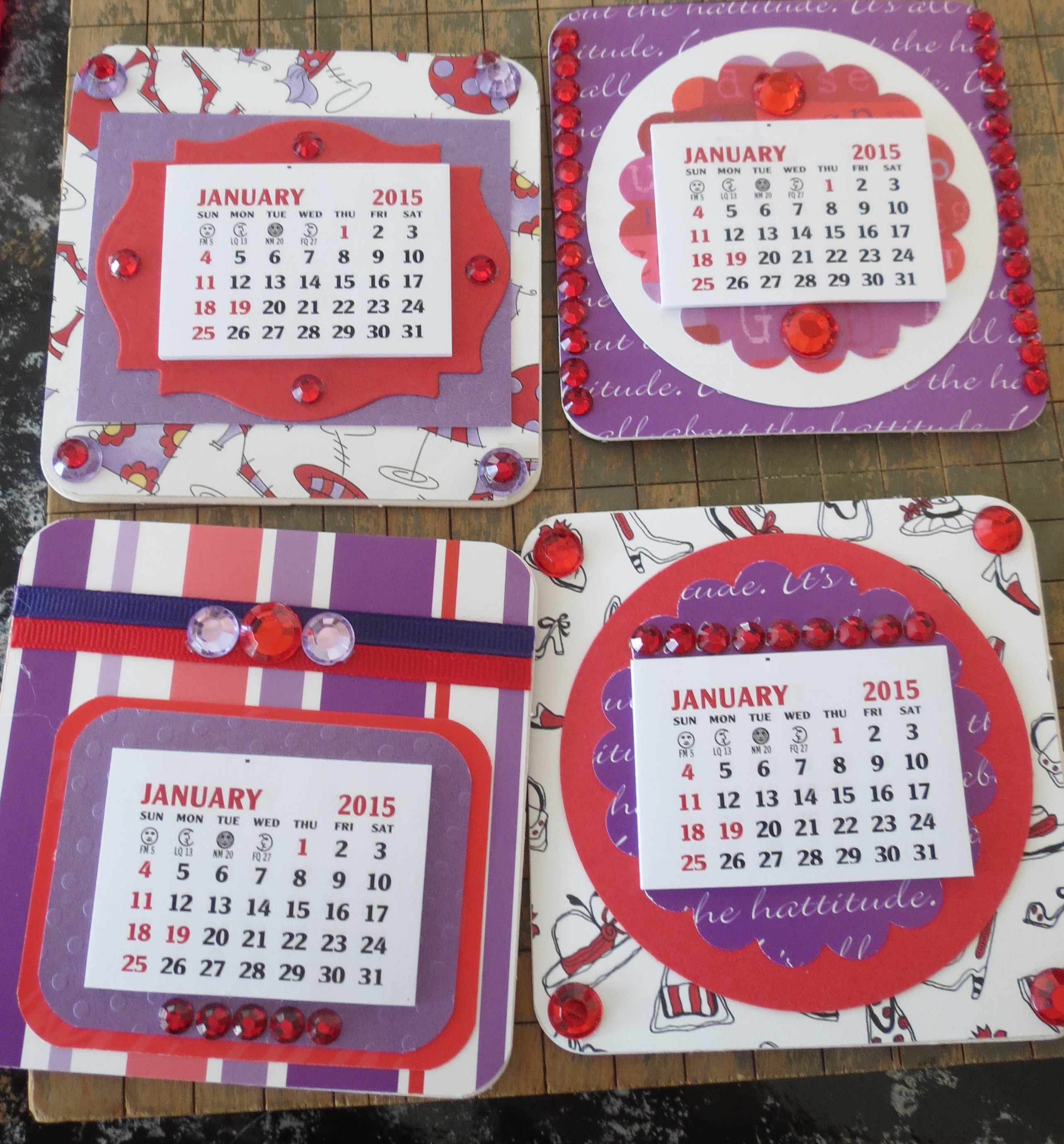 Liz and I hosted this month’s red hat lunch at the Cracker Barrel Restaurant. Liz made all the ladies a peppermint patty treat and I made each a fridge magnet calendar on coaster sized cardboard – made with Red Hat Paper and gems. We were pleased to be joined by Marilyn, Judy, Peggy, Mae and Paulette.