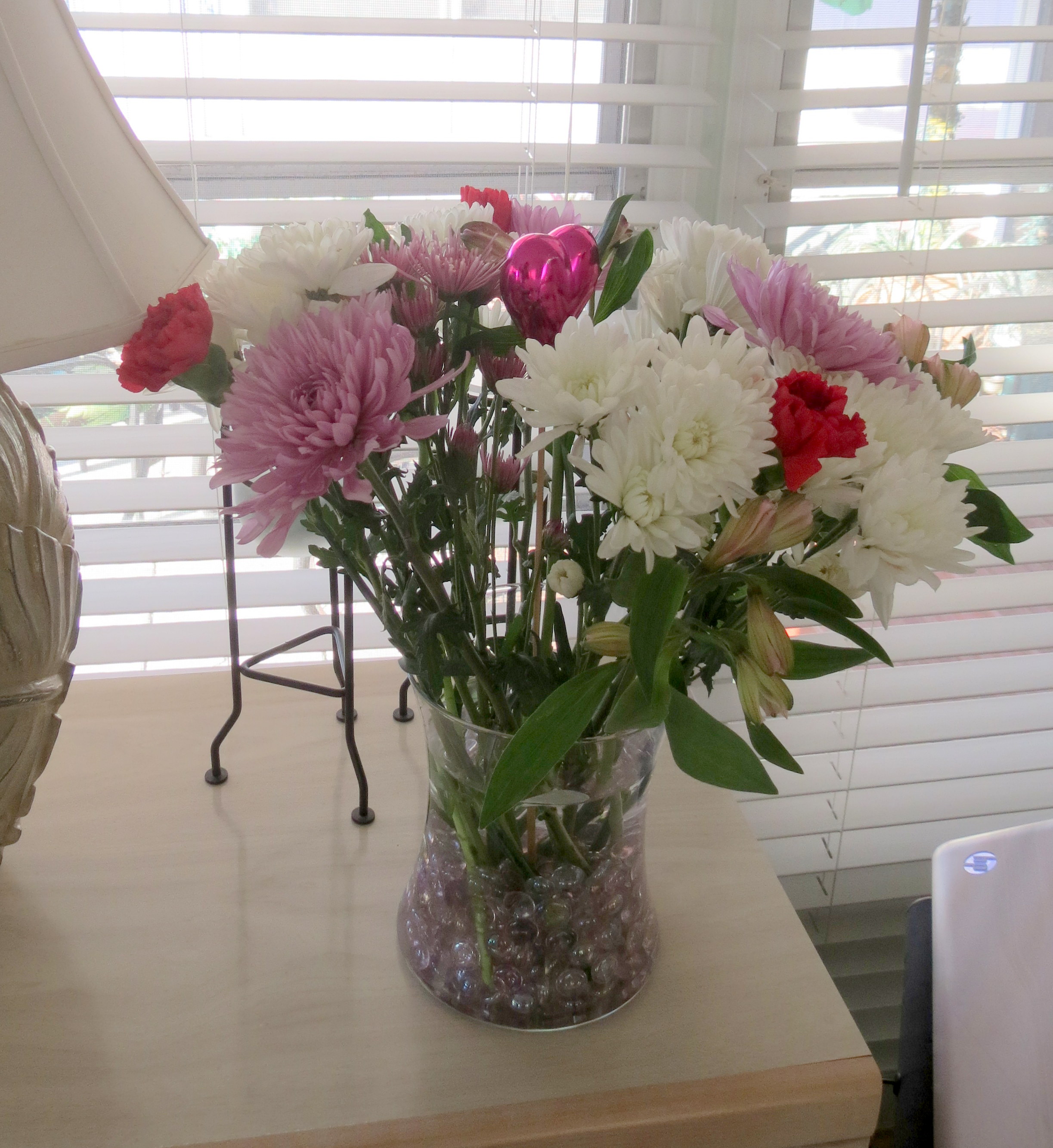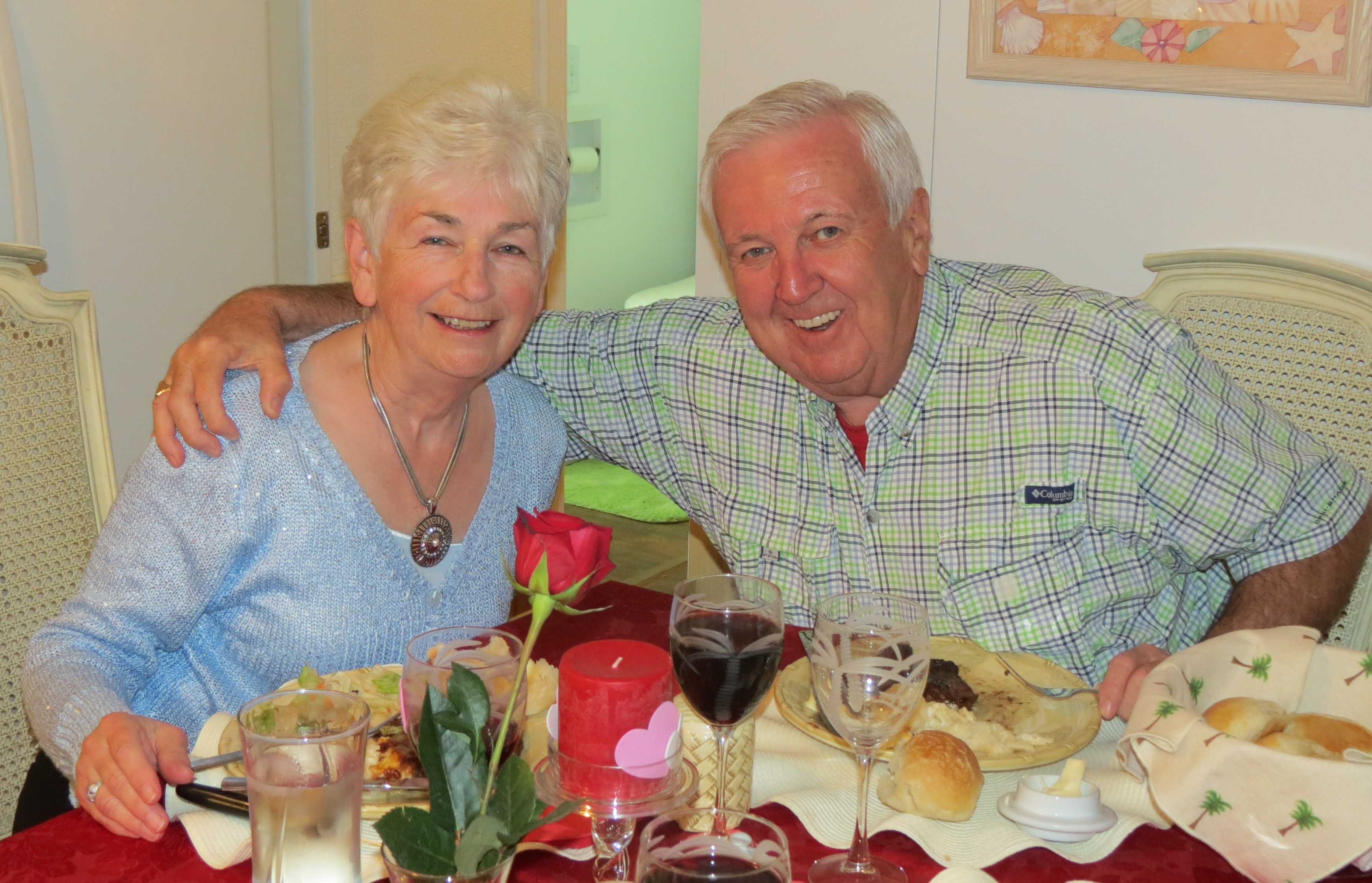 I received flowers this morning and tonight we celebrated Valentine’s Day at the Munroe’s. Each of us contributed a side, salad, appetizer, or dessert as well as our own steak. The guys did a great job of cooking for us and we had a super time with the gang. It was cool today but that beautiful sun and clear sky are wonderful.