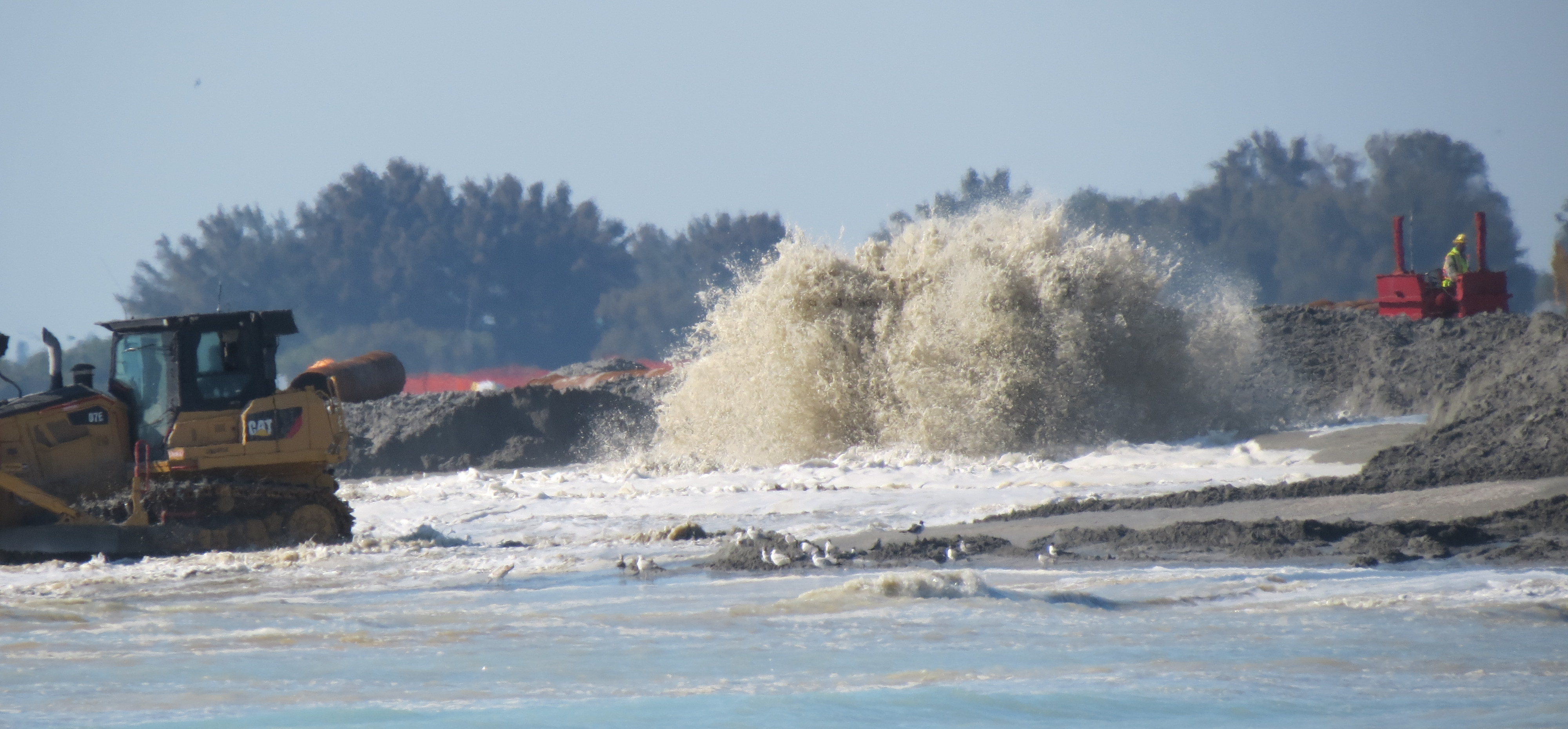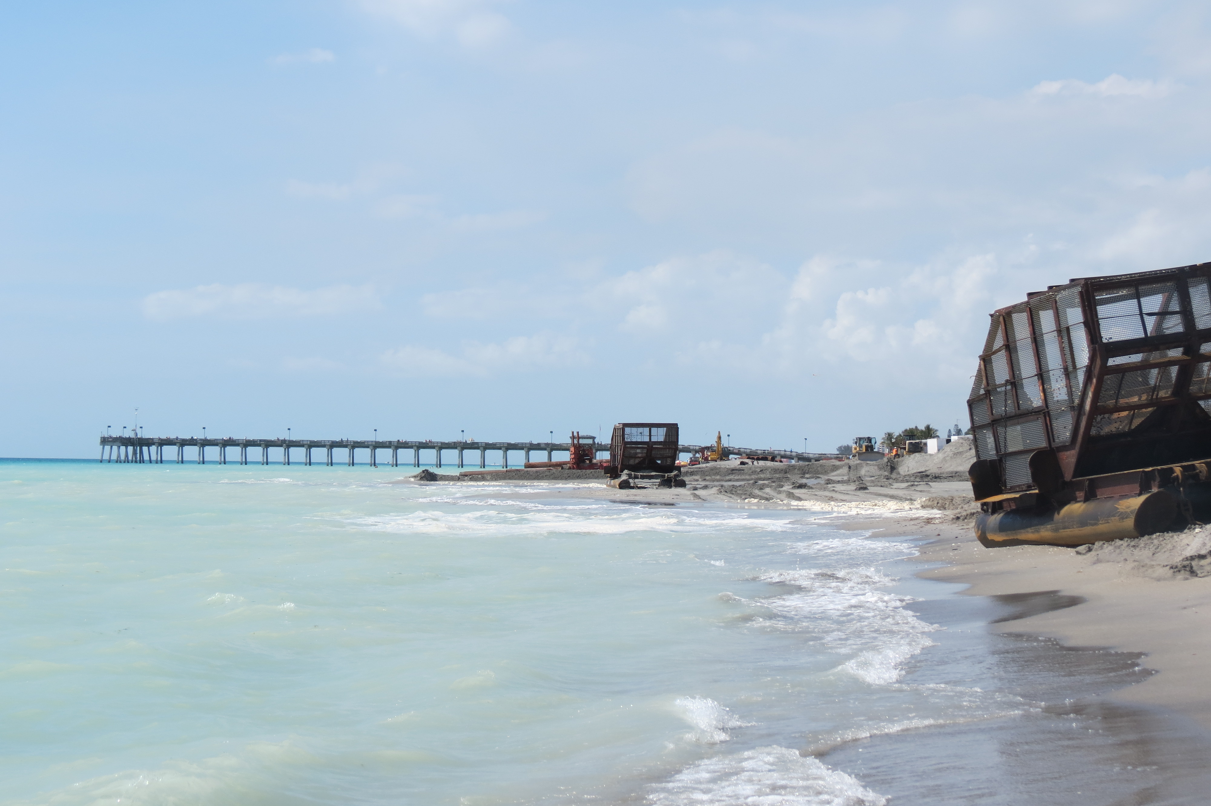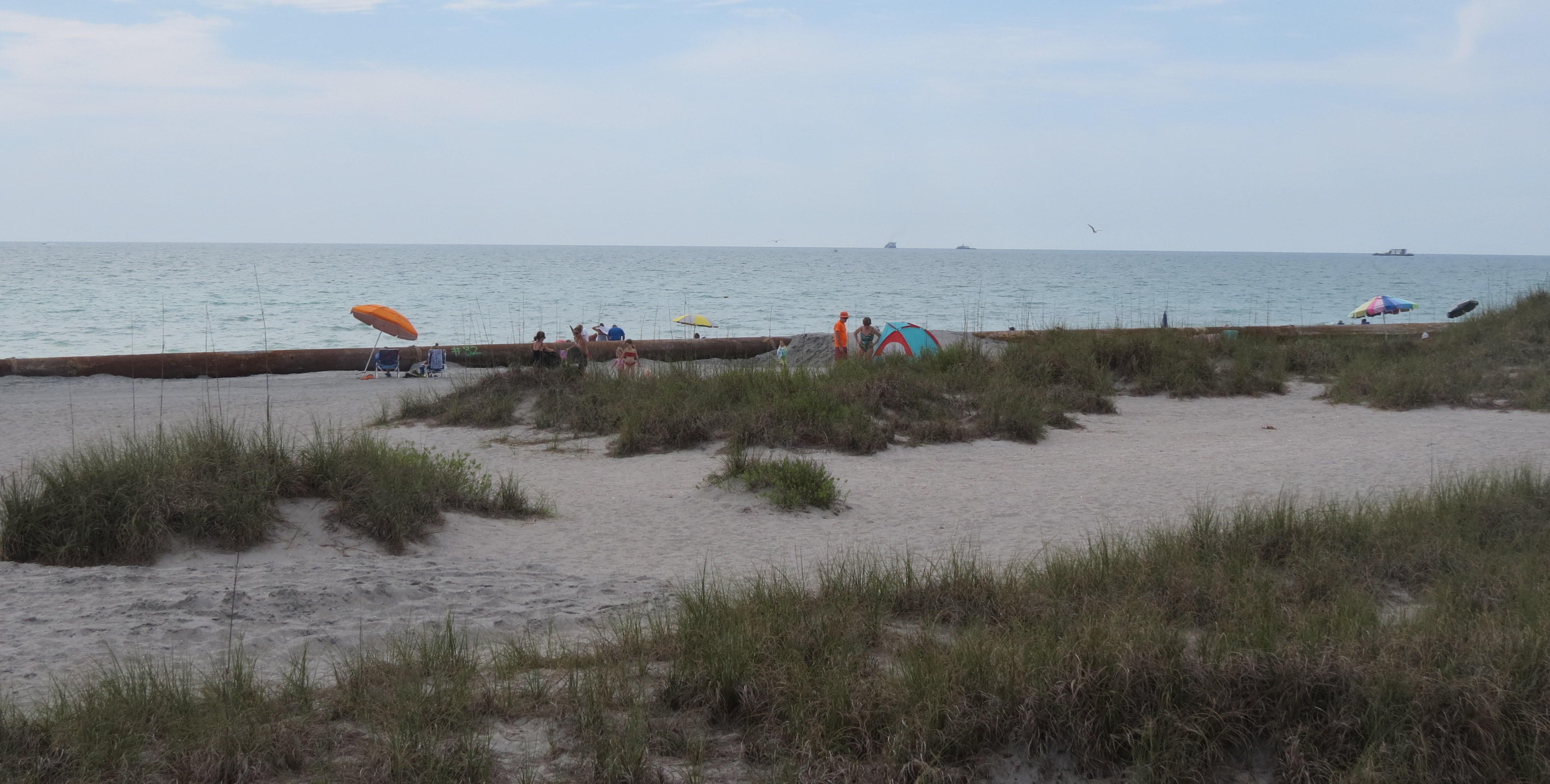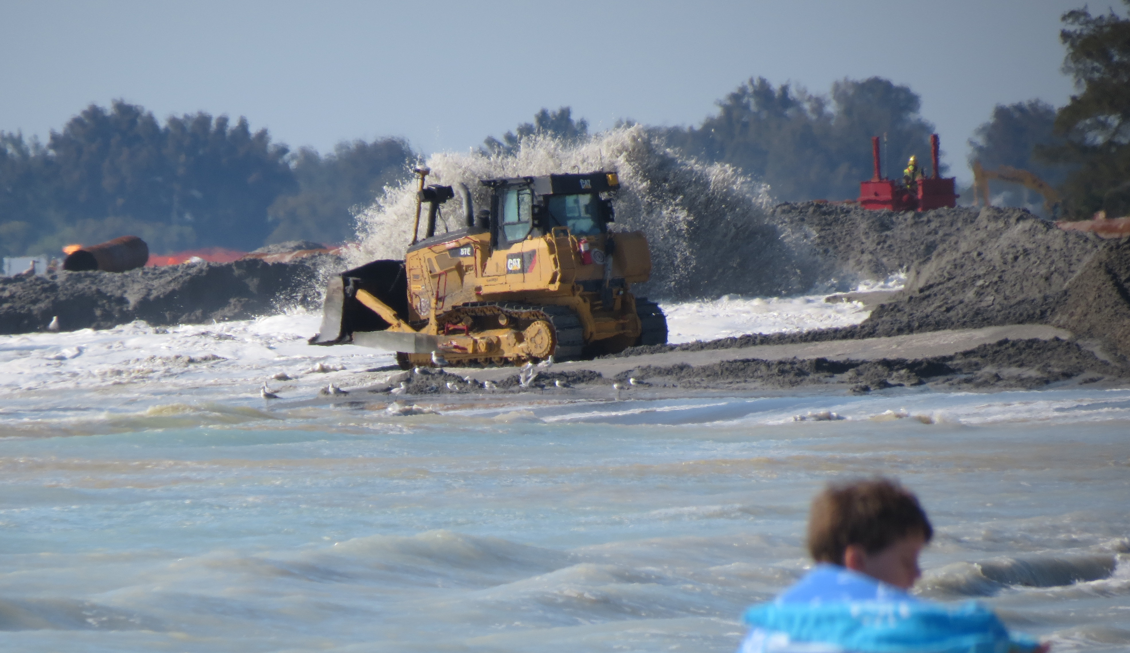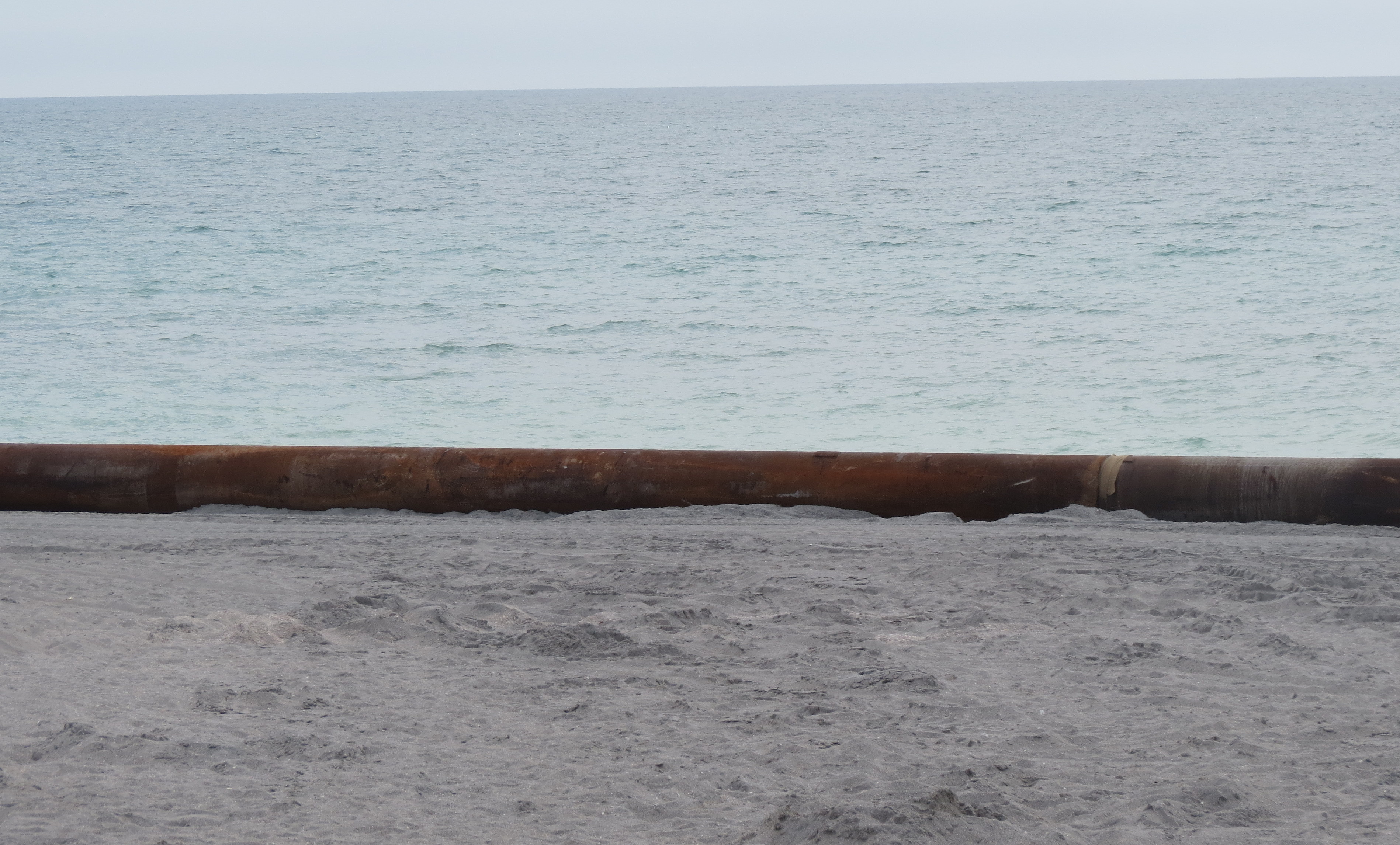 Every 10 years or so they replenish the beaches here and this year it is happening. It is something we have not seen before so we have been very interested in the progress so far. It will be a 20.7 million dollar fix so it ought to be great. They have added about 15 meters of depth and lots of height. They have a pipe about 1 meter in diameter which runs parallel to the shoreline. Through it they pump water and sand and it is quite the sight.