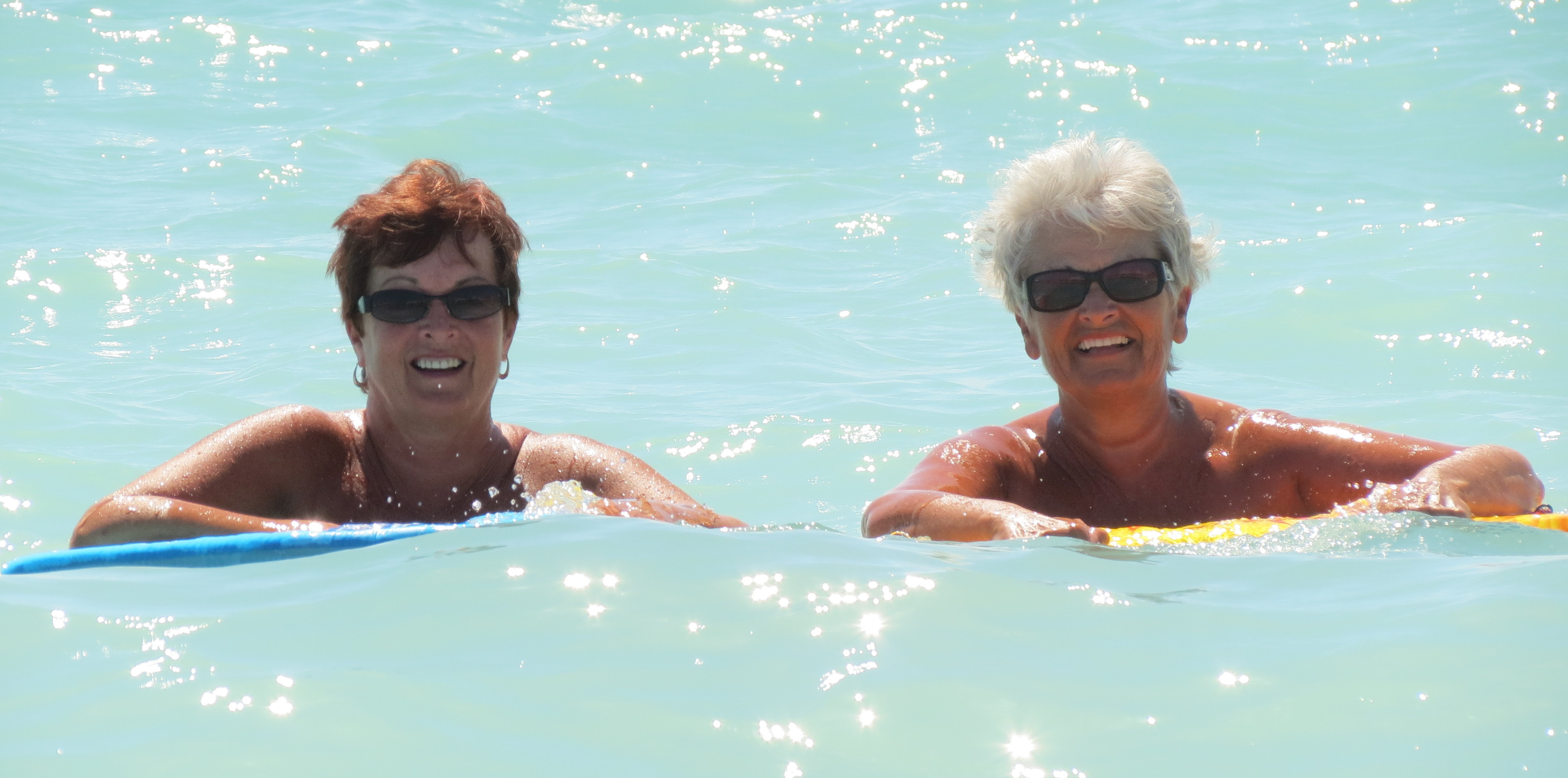 Liz and I love the water and the sun – our little boogie boards are fun too!