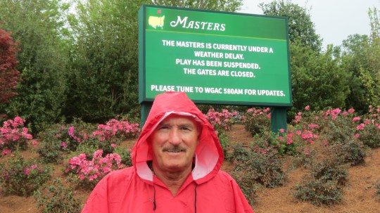 Our family has been extraordinarily lucky – for the last three years we have won the chance to buy Masters tickets. Dave got to go last year and then when my sister won this year he got a second chance – and I used a ticket too. We drove to Augusta on Tuesday and met my nephew Trevor and his friend Blaise for supper. The next morning (with a forecast of rain) we headed to the site. At 8AM we managed breakfast and then headed onto the course. We worked our way down to Amen Corner where we sat in the bleachers. The horn blew and the announcement was made to evacuate the property. So – along with thousands of others – we made our way back to the parking lot and that ended it for us. The course was reopened for an hour at noon but by then we were headed south to Savannah (just ahead of the rain and tornado threats).