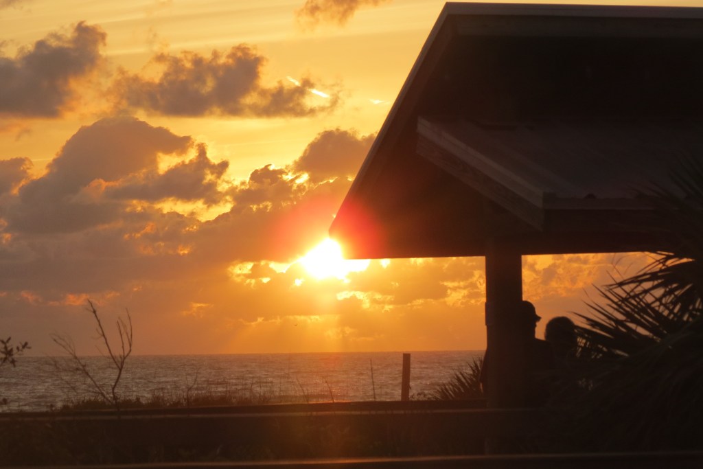 It is hard to imagine that we will be in Dartmouth in 15 hours! We have rented a large Suburban and along with the Corkerys are headed to Orlando (about a 3 hour drive) where we are booked on a direct flight to Halifax. Once again the time has flown and we are closing up our beach house for another season. While we are sad to leave this beautiful weather and life style, we are also anxious to see family and friends again after this much time away. We did make a special trip to Service Beach on our bikes and took in the sunset. These pics will have to keep us happy until next year.