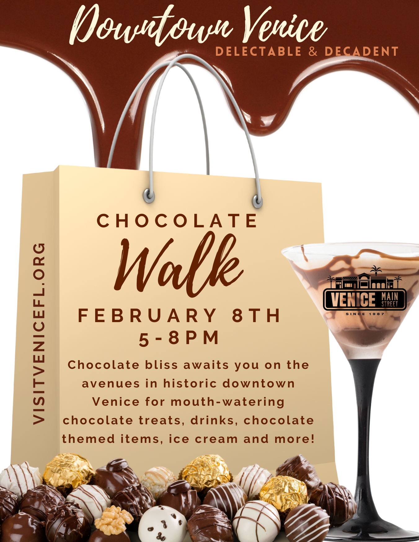 On the 8th we went downtown for the Chocolate Walk. It was like Halloween for adults with a huge crush of people clamoring for a piece of chocolate, a bite of chocolate cake or a drink of chocolate at stores along both Venice and Miami Avenues.