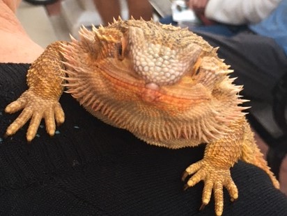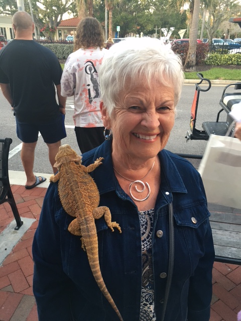 I forgot my camera but Earl captured this pic of Liz and a pet bearded dragon. After about an hour of the walk we decided we had had enough and headed to Perkins to have supper.