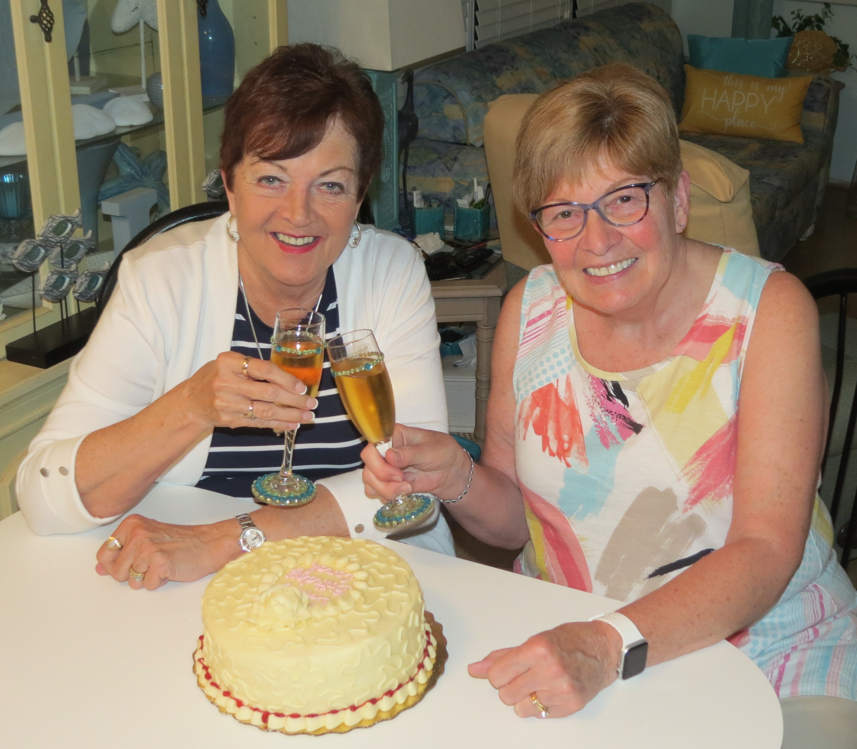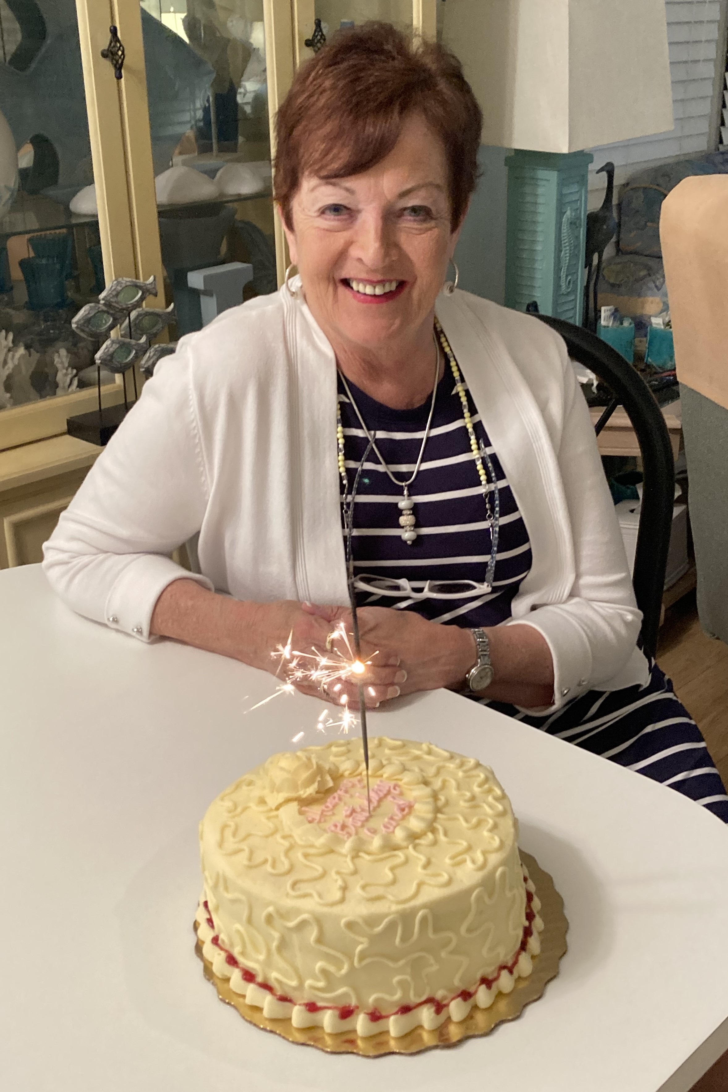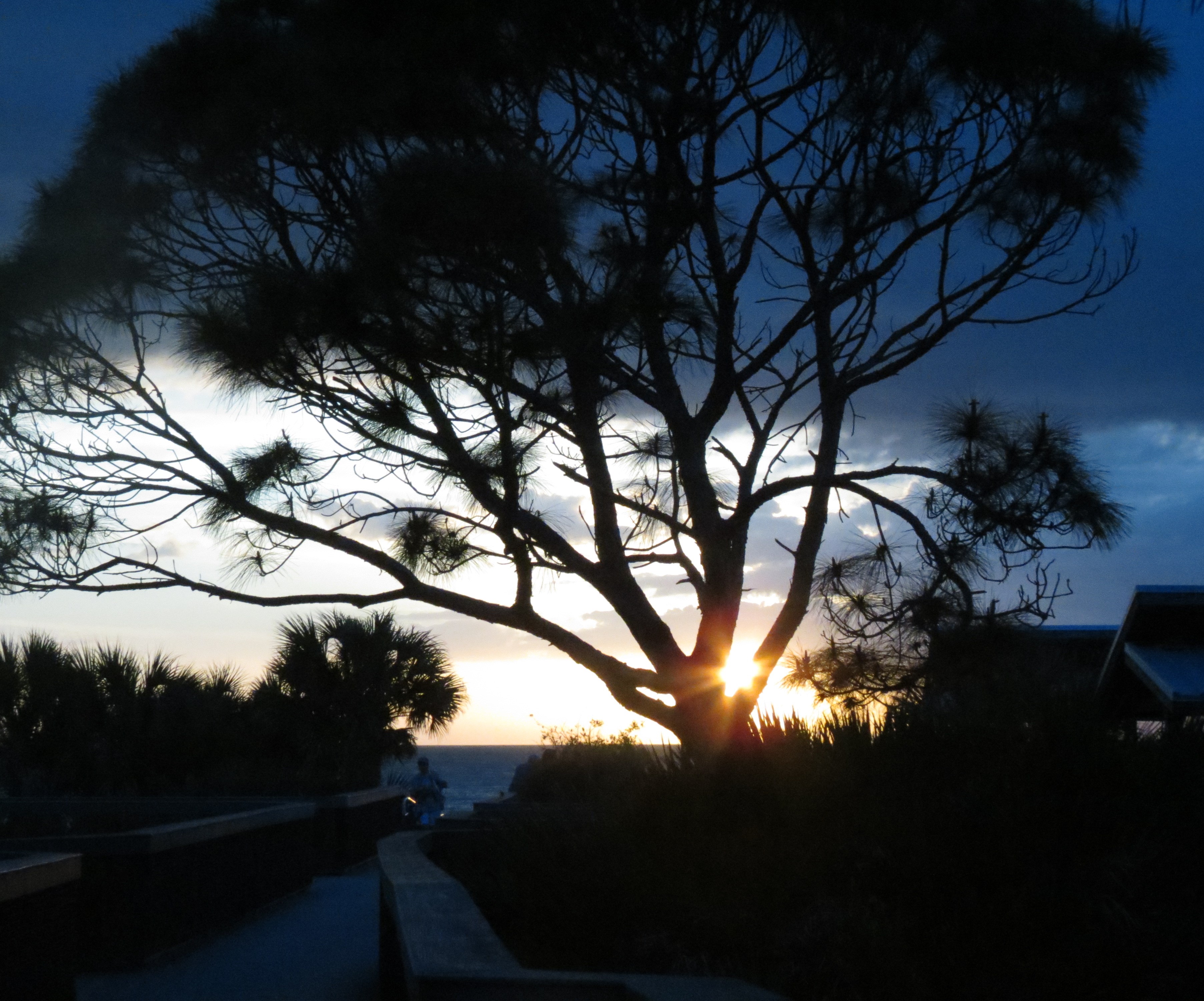 And because she really likes my birthday more than I do, when Mary and Bob arrived on Saturday we began the second portion of the celebration. She brought me this beautiful flower arrangement and we shared my special birthday cake (Raspberry Elegance) which we washed down with champagne! To make it even more perfect we went to Service Beach to see another sunset.